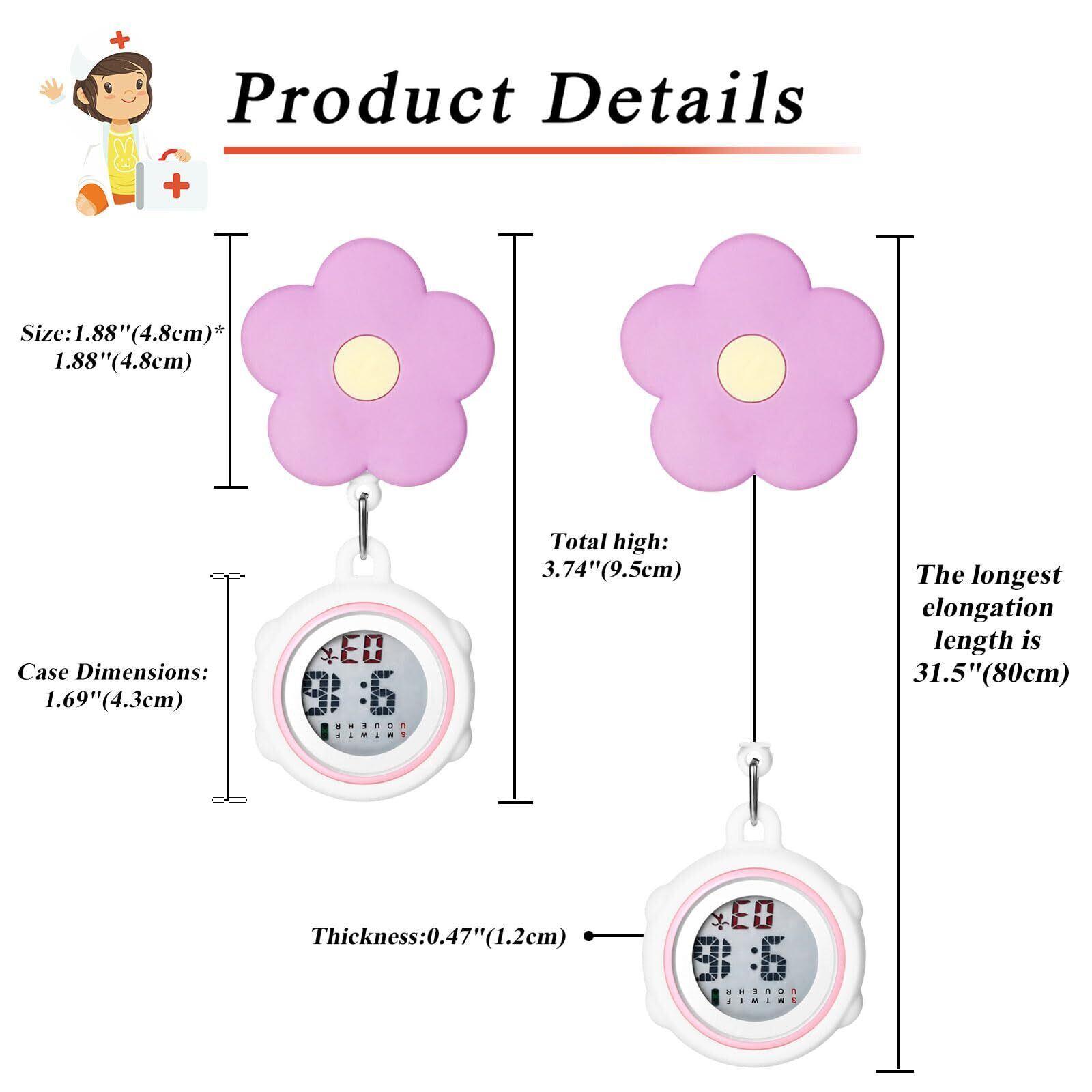【2022最新】ナースウォッチ 可愛い お花 クリップ式 伸び縮み: シリコン 看護師 時計 デジタル 逆さ 防水 懐中時計 ポケットウォッチ クオーツ ナース 時計 看護師 グッズ - 看護の日 看護師 保育士 プレゼント最適