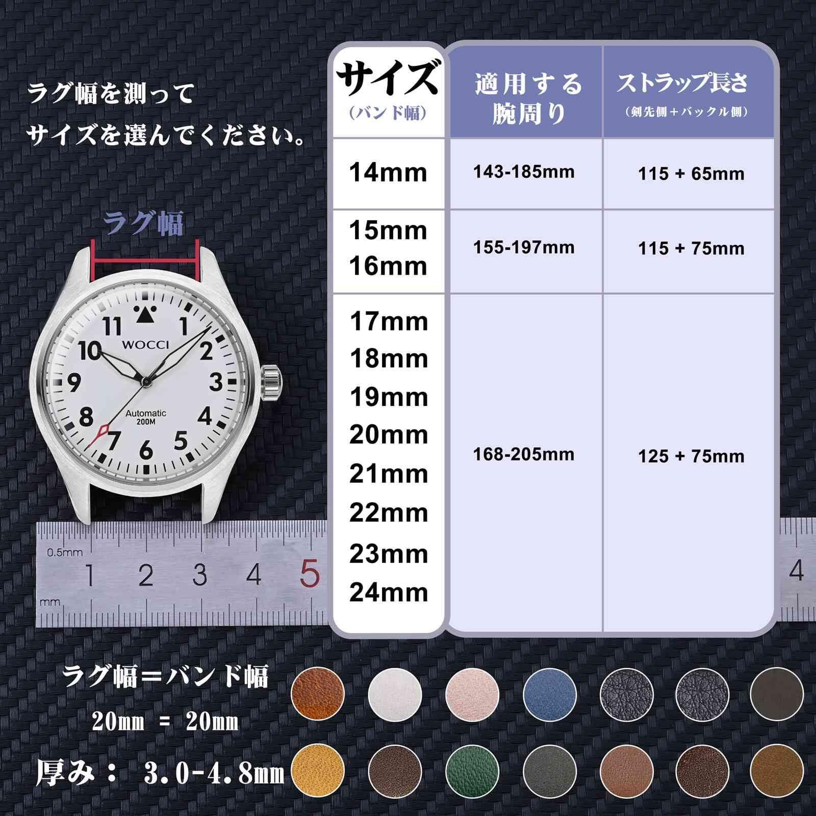 1 x 【数量限定】[WOCCI] 時計ベルト14mm~24mm 時計替えベルト ヴィンテージ レザー 腕時計バンド 本革