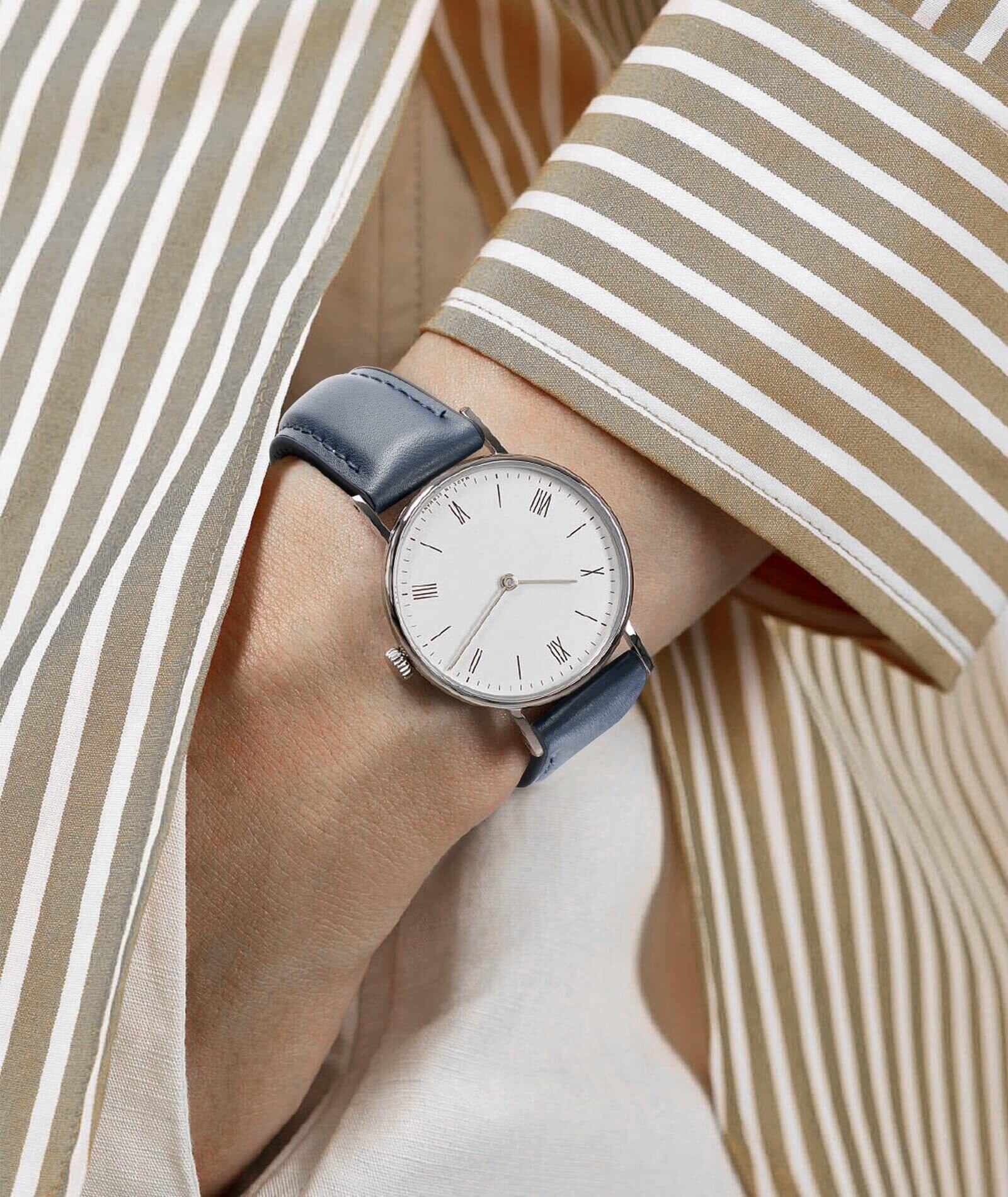 1 x 【数量限定】[BINLUN] レザー 時計バンド 内側のラバー 通気性 ハイブリッド クイックリリースウォッチベルト 腕時計ベルト スマートウォッチベルト 男女通用 (ダークブルー,20mm,シルバーバックル)
