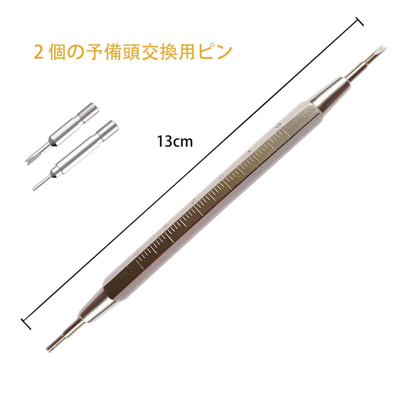 内蔵定規:側面にミリ単位(mmとcm)の定規が刻印されており、ラグ、ストラップ、その他の部品の測定が簡単です。時計のストラップを外すのに最適なバネ棒ツールです。
