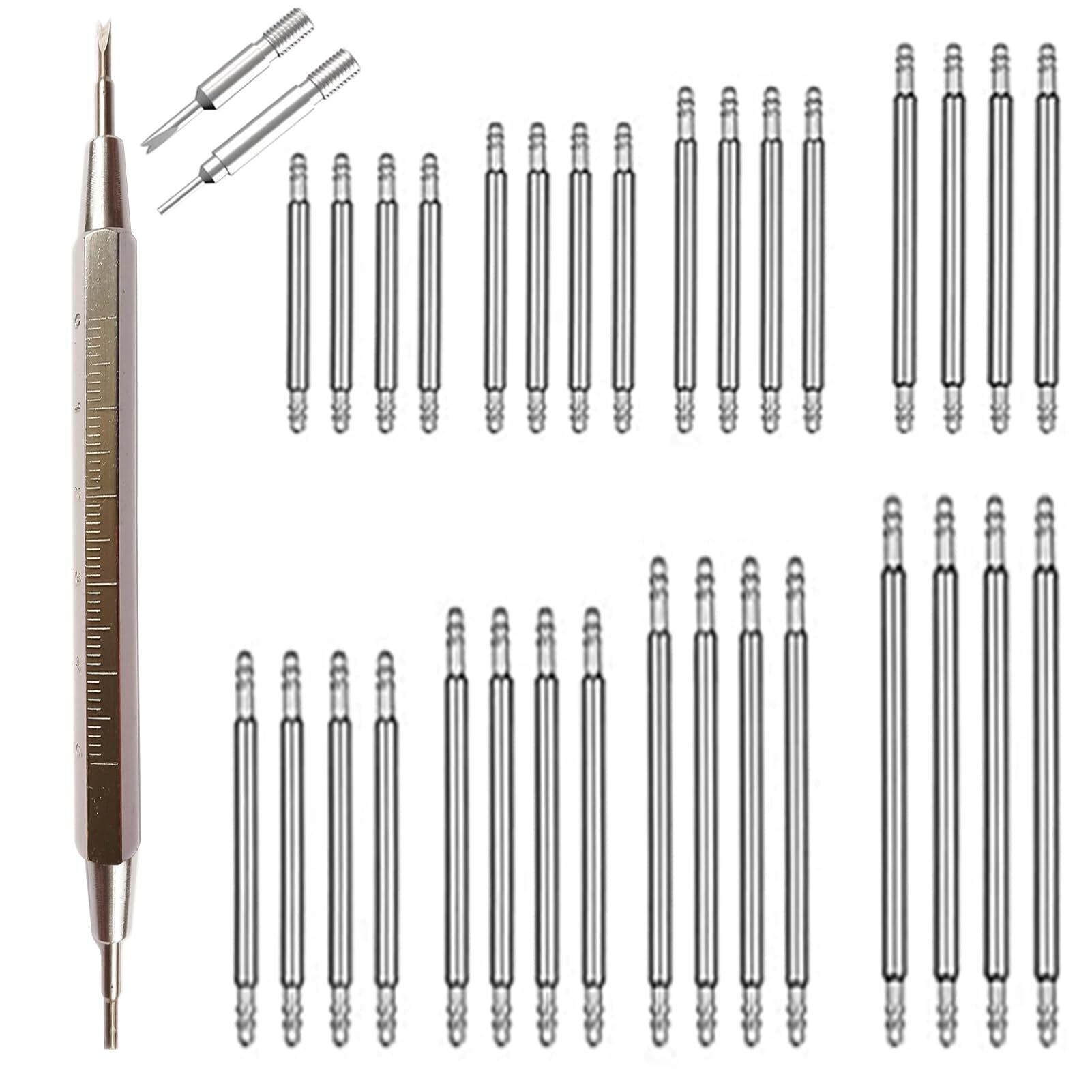 【在庫処分】EDu 腕時計ベルト交換工具 バネ棒外し 替えの針2本付き 内蔵された定規 時計バンドピン ステンレス鋼 ベルトピン 32本(12-26mm)