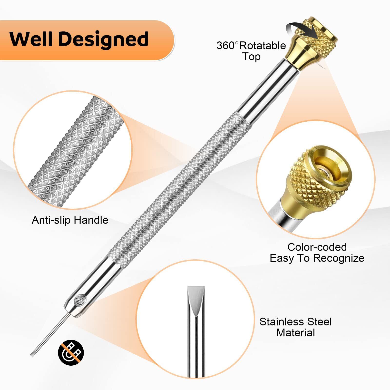 JOREST 腕時計用 ドライバー 時計工具セット、精密ドライバー メガネ用/時計用、眼鏡 時計 修理、時計の裏蓋オープナー、時計 電池 交換、ーミニマイナス/プラスドライバセット