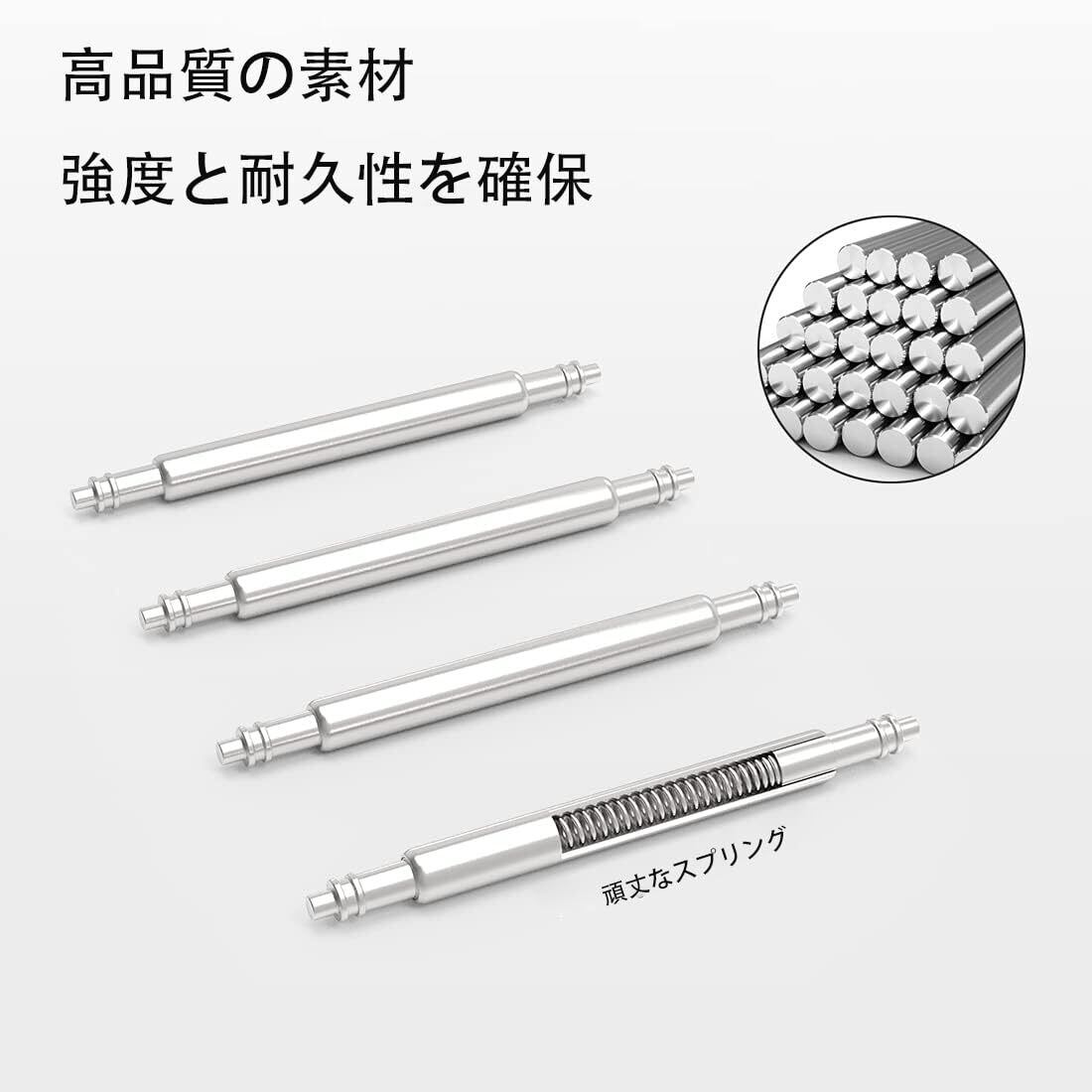 本製品は高品質のステンレス鋼を使用しており、耐久性に優れています。しっかりとした作りで、長期間にわたって安定した性能を発揮します。バネ棒外しや替えの針も付属しており、幅広い時計に対応可能です。
