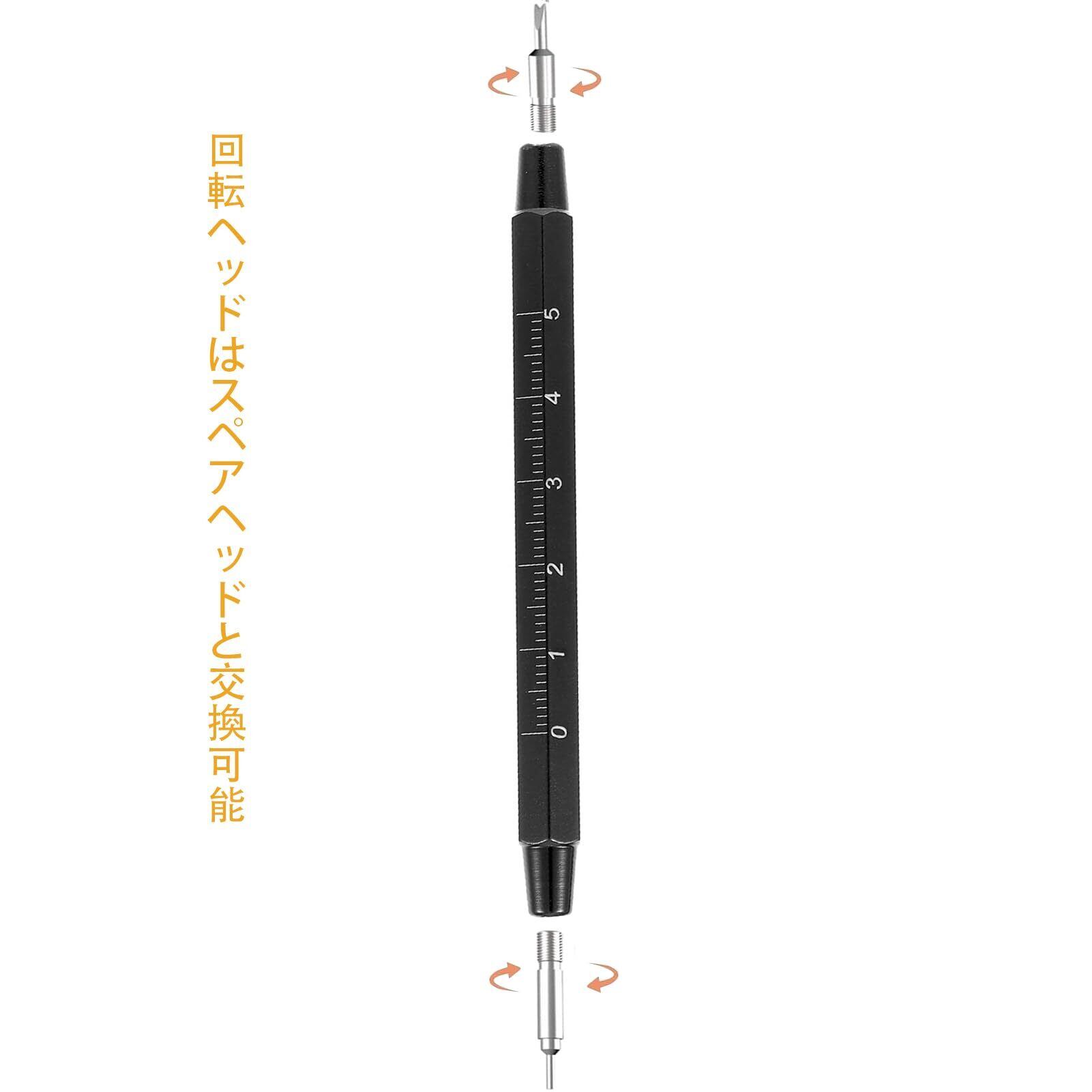 内蔵定規:側面にミリ単位(mmとcm)の定規が刻印されており、ラグ、ストラップ、その他の部品の測定が簡単です。時計のストラップを外すのに最適なバネ棒ツールです。