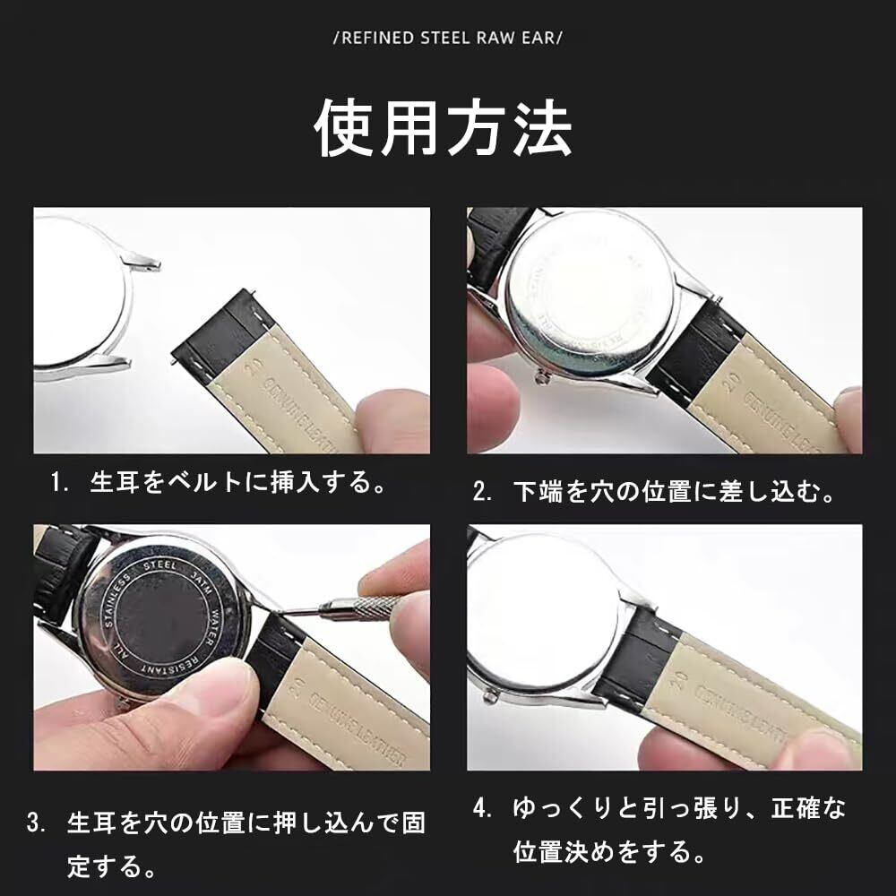 本製品は、優れた耐久性を誇るステンレススチールを使用しており、サビに強く、長期間安定した性能を発揮します。直径φ1.3mmのバネ棒を10本セットでご用意しており、16mm幅の腕時計バンドにしっかりフィットする設計ですので、安心してご使用いただけます。