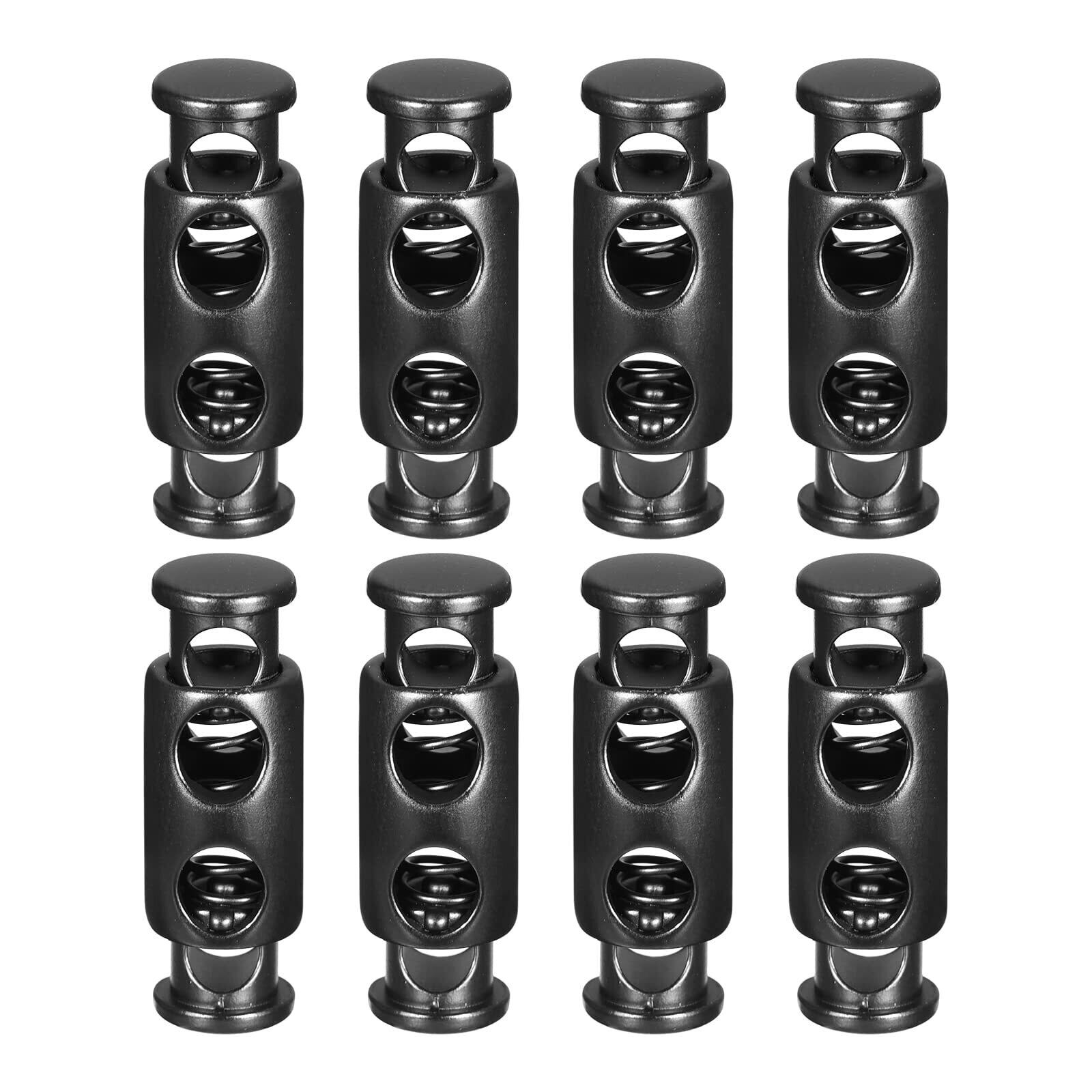 【在庫処分】uxcell 金属コードロック 2穴 バネストッパー ファスナースライダー トグルエンド 巾着バッグ バックパック 衣類のストラップ用 3.8mm 電気泳動ブラック 8個