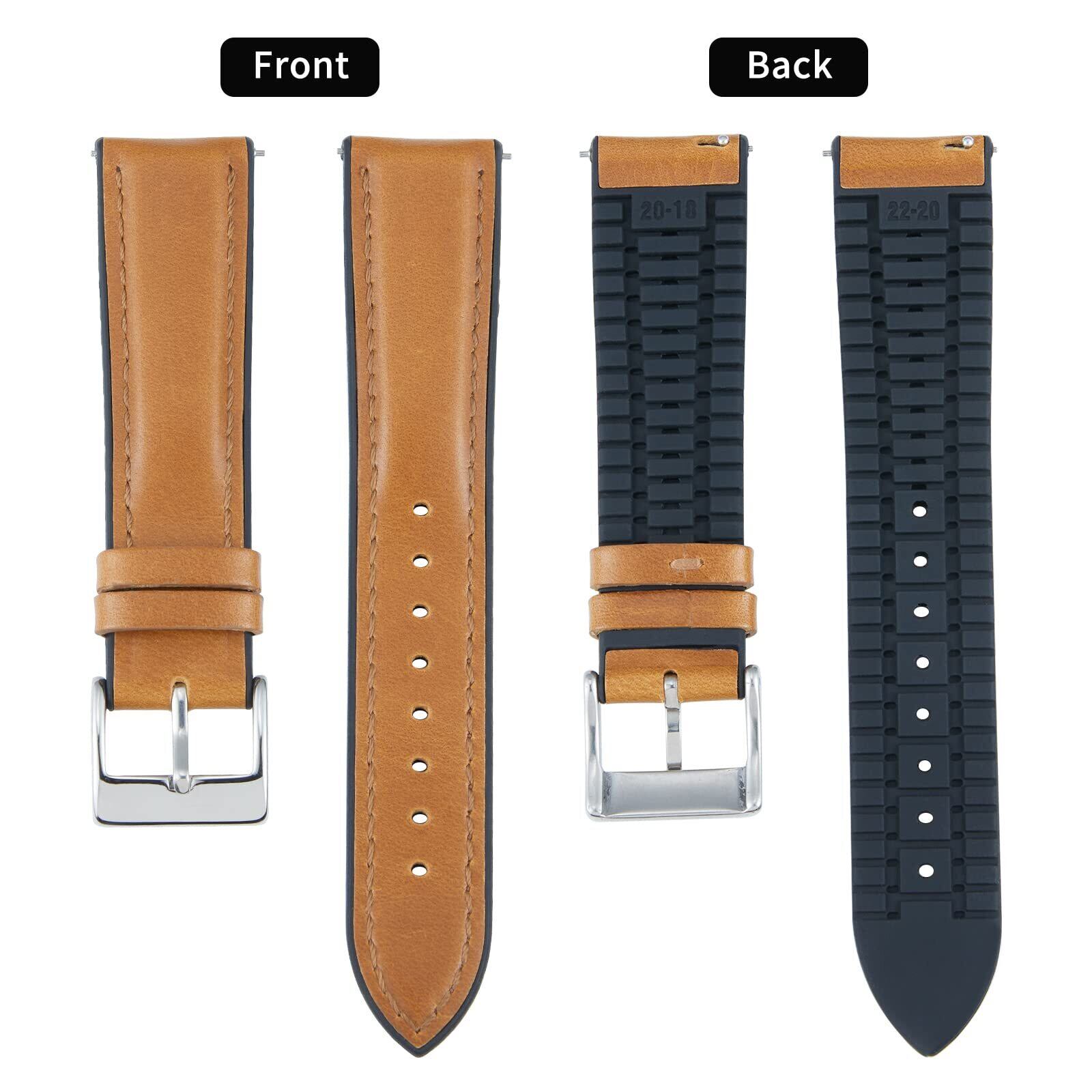 【ユニークなデザイン】暑い日に革時計バンドが肌にくっつくのを防ぎ、ウォッチベルトの背面は、シリコンゴムを組み合わせています。通気性のある溝のデザイン、肌に呼吸するスペースを与え、ストラップの重量を軽減し、着用体験を向上させます。
