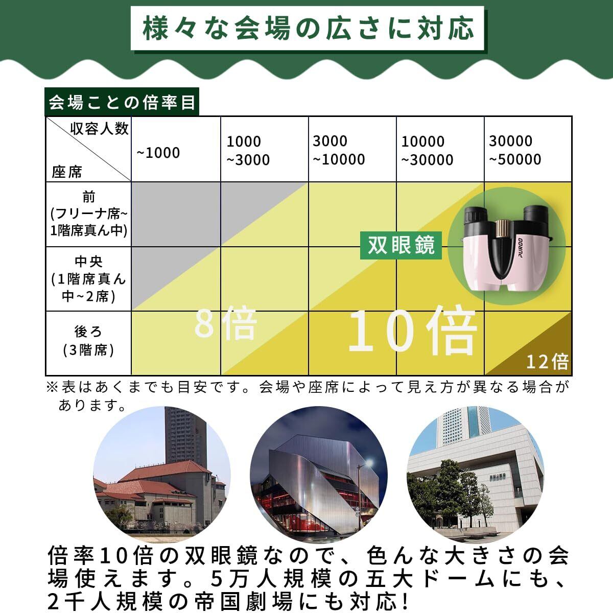 PUROO 双眼鏡 ライブ用 コンサート ドーム スポーツ観戦 観劇 10倍 高倍率 軽量 コンパクト オペラグラス 推し活 レディース 小型 ピンク