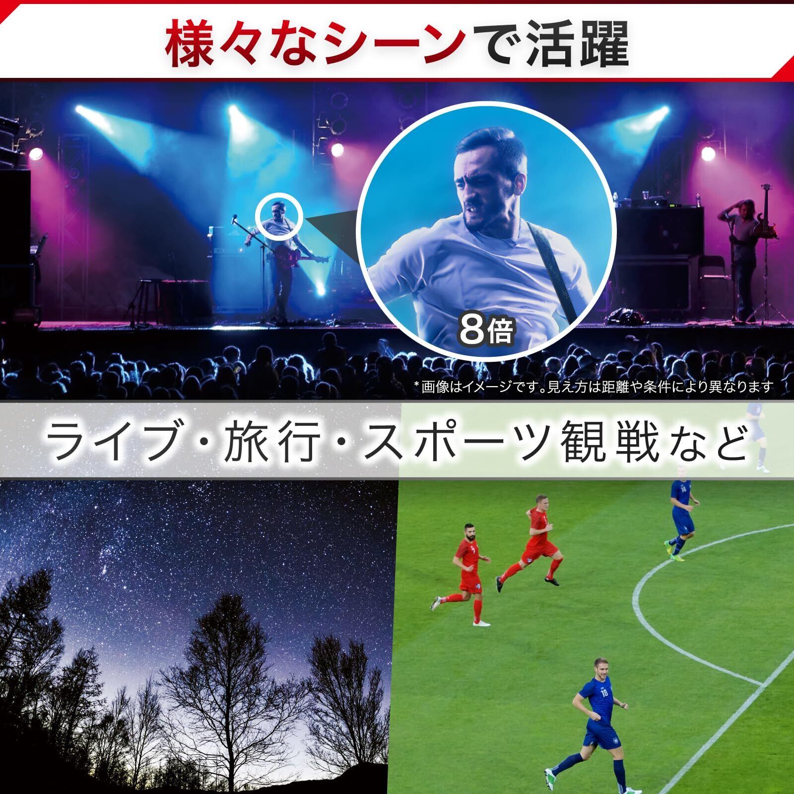 【扱いやすい倍率8倍】シーンを選ばず無難にこなすバランスのよい倍率、それが8倍です。適度に拡大率があり視野も明るいため、肉眼では得られない迫力ある映像を手軽にお楽しみいただけます。