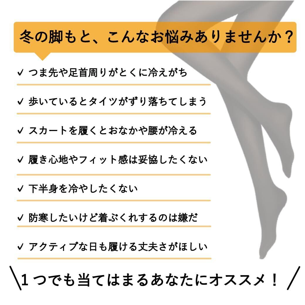 シンプルなデザインで、どんなスタイルにもぴったり合わせられます。スカートやワンピース、パンツにも合わせやすく、秋冬のファッションを楽しむ強い味方です。このタイツを取り入れることで、あなたのスタイルに暖かさとおしゃれ感をプラスします。