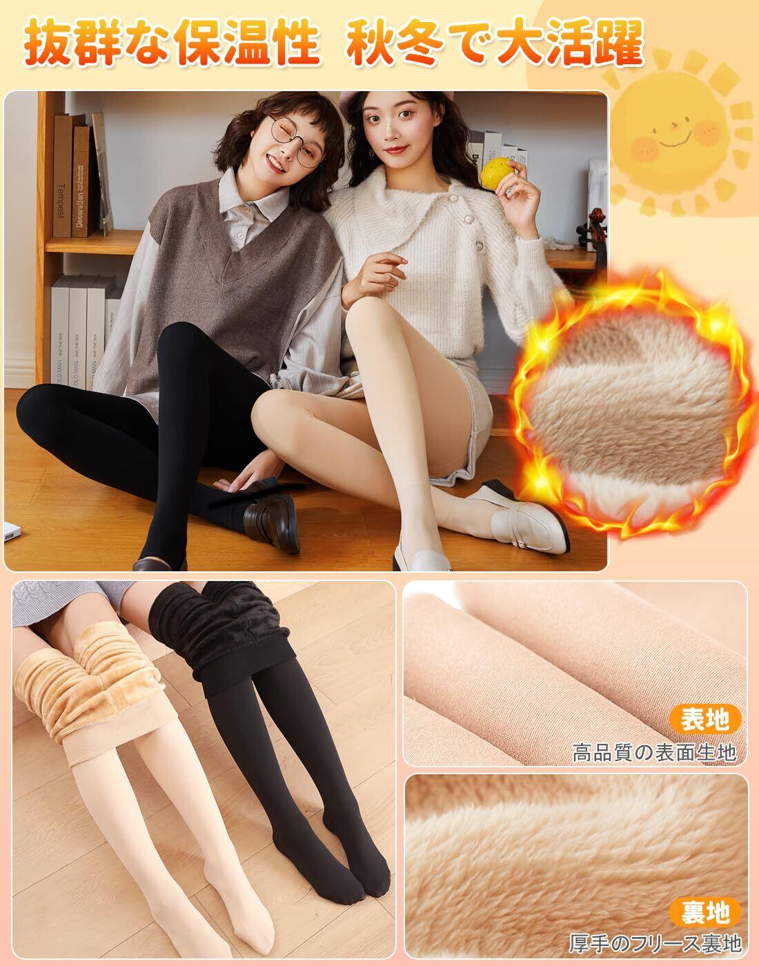 【柔らかい履き心地 & 優れた耐久性】✨本品のタイツは、ポリエステル 65%、スパンデックス 20%、ナイロン 15%で作られています。内側は柔らかくふわふわの素材を採用しており、肌触りが良く、快適な履き心地を実現しました。外出先でのお仕事や、家事の際にも活躍する一品です。表面の生地は毛玉ができにくく、日々のご使用に耐える耐久性を備えています。