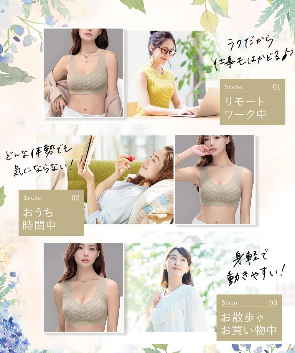 【最新柔らかなノンワイヤーブラ】本ノンワイヤーブラ商品は2枚セットで,24時間にも装着できることを実現し、シンプルな上品なデザインスタイルを採用されて、細かくとカットを重視して、フィット感と美しさの完璧バランスを確定されることができるようにします。絶妙なカットと飾りが通じて、ノンワイヤーブラをつけたら女性の綺麗なラインを現れ同時に装着のリラックスもあります。一体型3Dモールドカップで、吸湿性、通気性に優れて、とても柔らかく、バストにフィットしやすく、締め付けず美しいシルエットをかなえます。1年中お肌にやさしく快適な着ごこちです。