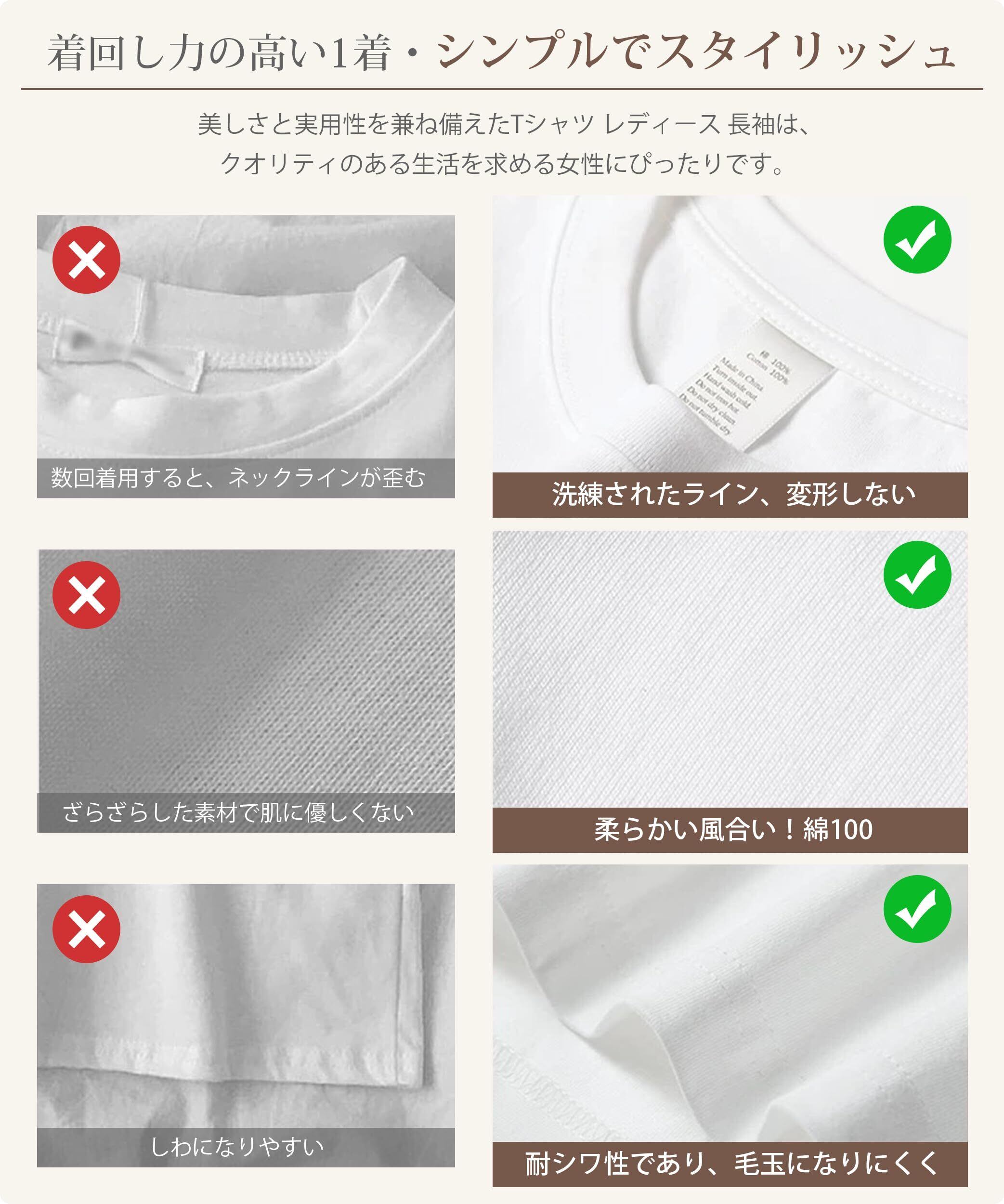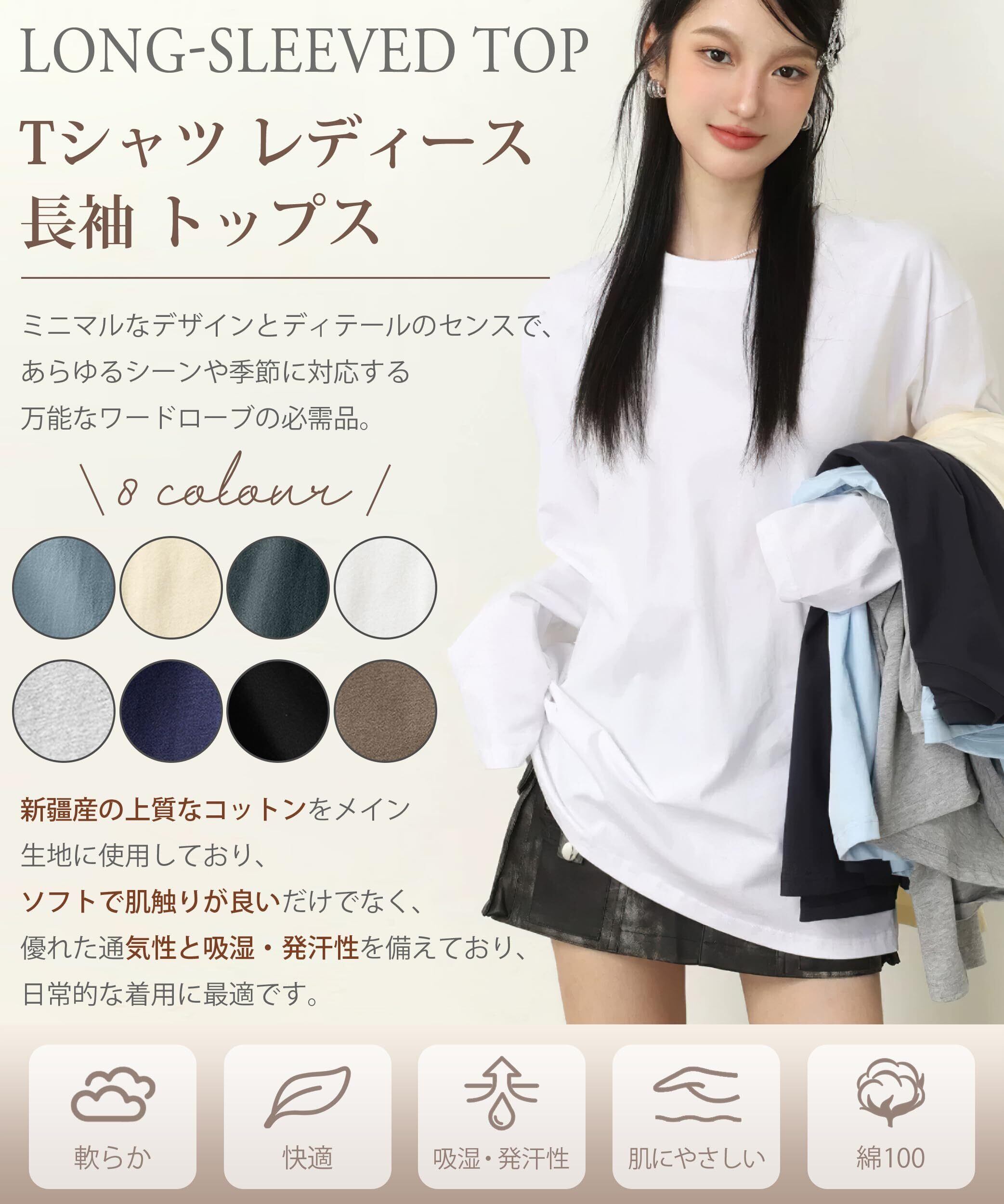 【心温まる柔らかさ・綿100】 この新しい220グラムの重量パンド Tシャツ レディース 長袖は、特に新疆の良質な産地からの綿を原料として使用しています。この高品質のコットン素材は、肌触りがきめ細かく、肌触りが良いだけでなく、極めて柔らかく、着心地が良い。さらに、サイドには切れ目や継ぎ目、縫い目がないシームレス仕様で、体に直接着けても安心感があり、快適です。 毎日のレジャーや軽い運動に最適で、自然で健康的なライフスタイルを追求する人に理想的なアイテムです。