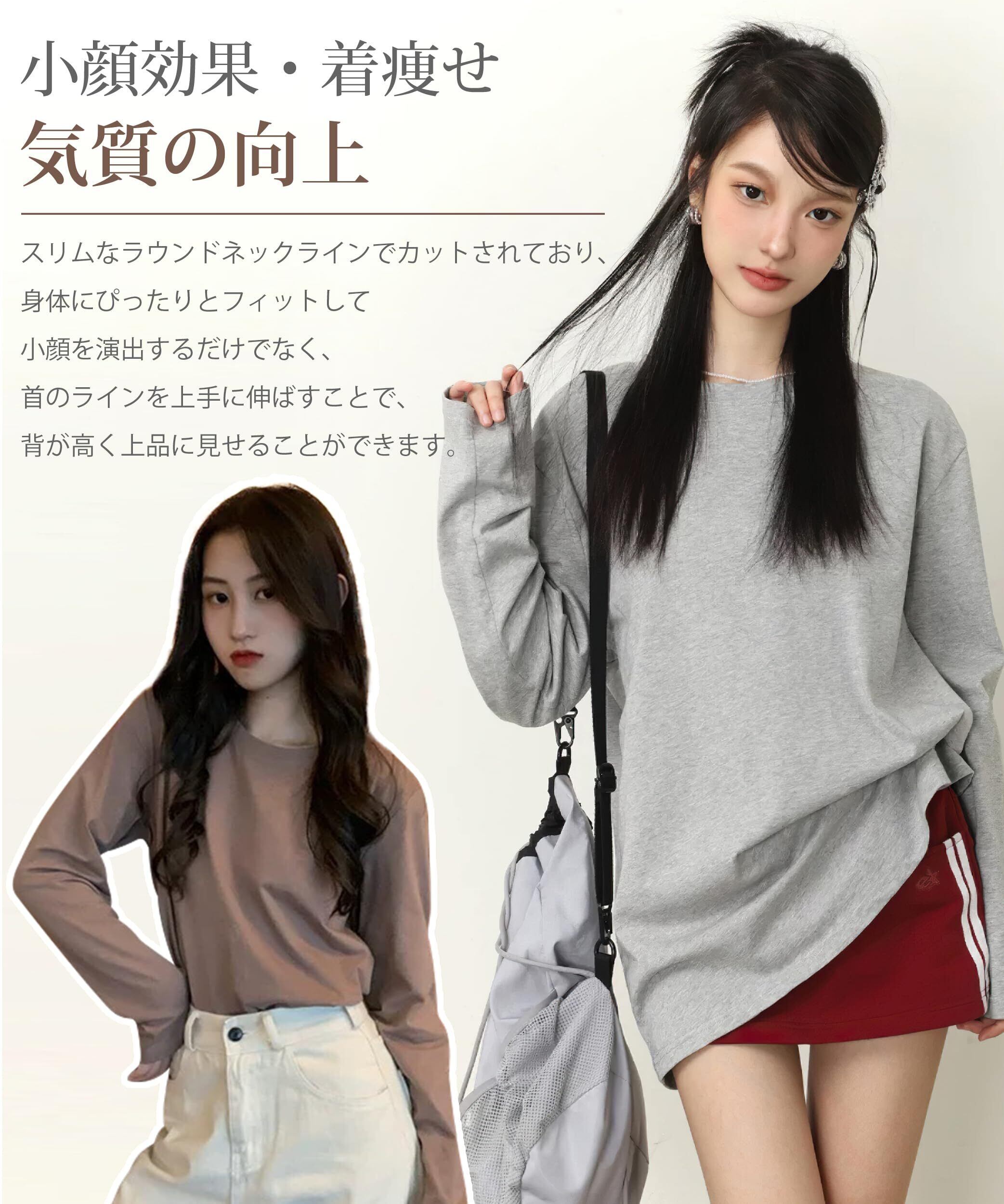 【新着商品】[EAXGO] 【綿100!当店1番人気】ロンティー レディース 長袖tシャツ トップス 【トレンドの新定義・ゆる感・小顔効果】カットソー クルーネック ティーシャツ ロングスリーブ 無地 カジュアル ゆったり 重ね着 きれいめ オシャレ 秋