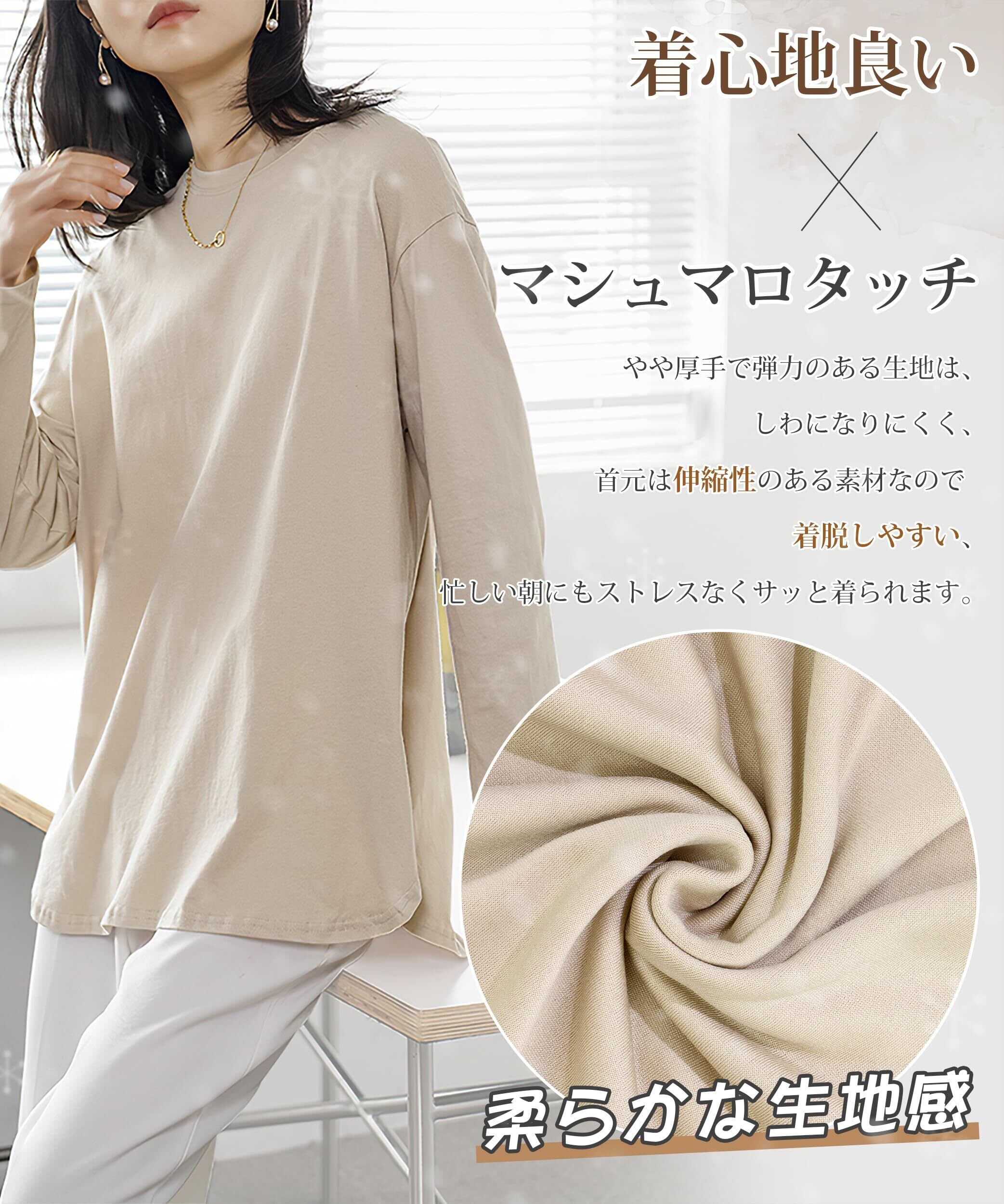 [Adcey] Tシャツ レディース 長袖 トップス カットソー 防寒 ティーシャツ 丸首 クルーネック やわらかい 着痩せ ゆったり 重ね着 インナー 無地 シンプル 耐久性 きれいめ