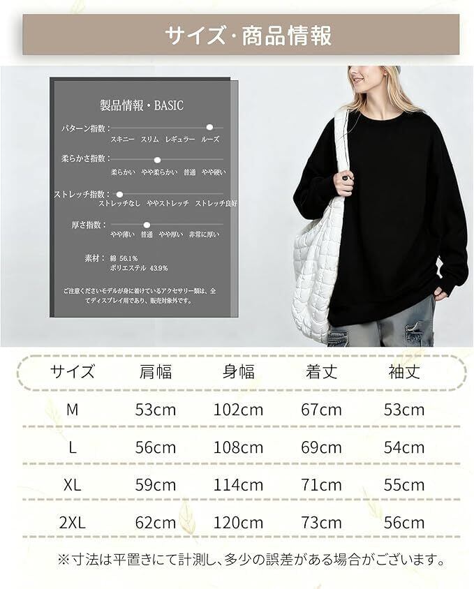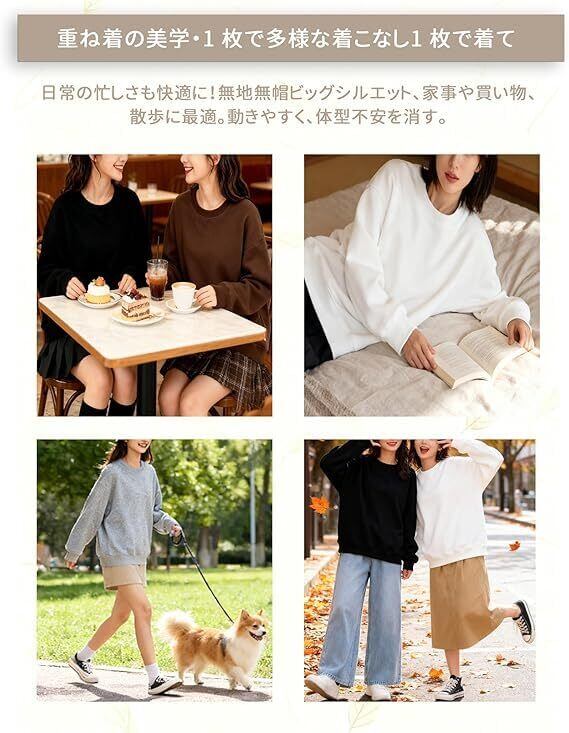 【こなれ感オーバーサイズスウェット】AINOR のこのトレーナーは、ゆとり豊かなデザインを採用しており、大きいサイズとビッグシルエットが特徴です。ロング着丈はお尻を完全に隠し、広い身幅は胸元や太ももの部分をカバーし、ドロップショルダー設計は二の腕をすっぽり隠すことができます。これにより、様々な体型の女性が気になる部分を隠して、自信を持って外出や日常のカジュアルシーン、例えば散歩や買い物に出かけるときにも着られます。体型に関係なく、ゆったりとした着心地で華奢に見えることができます。