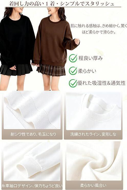 【新着商品】[AINOR] トレーナー レディース ノーフード 長袖 トップス 無地 プルオーバー ゆったり スウェット 着回し 大きいサイズ ビッグシルエット おしゃれ 体型カバー お出かけ カジュアル