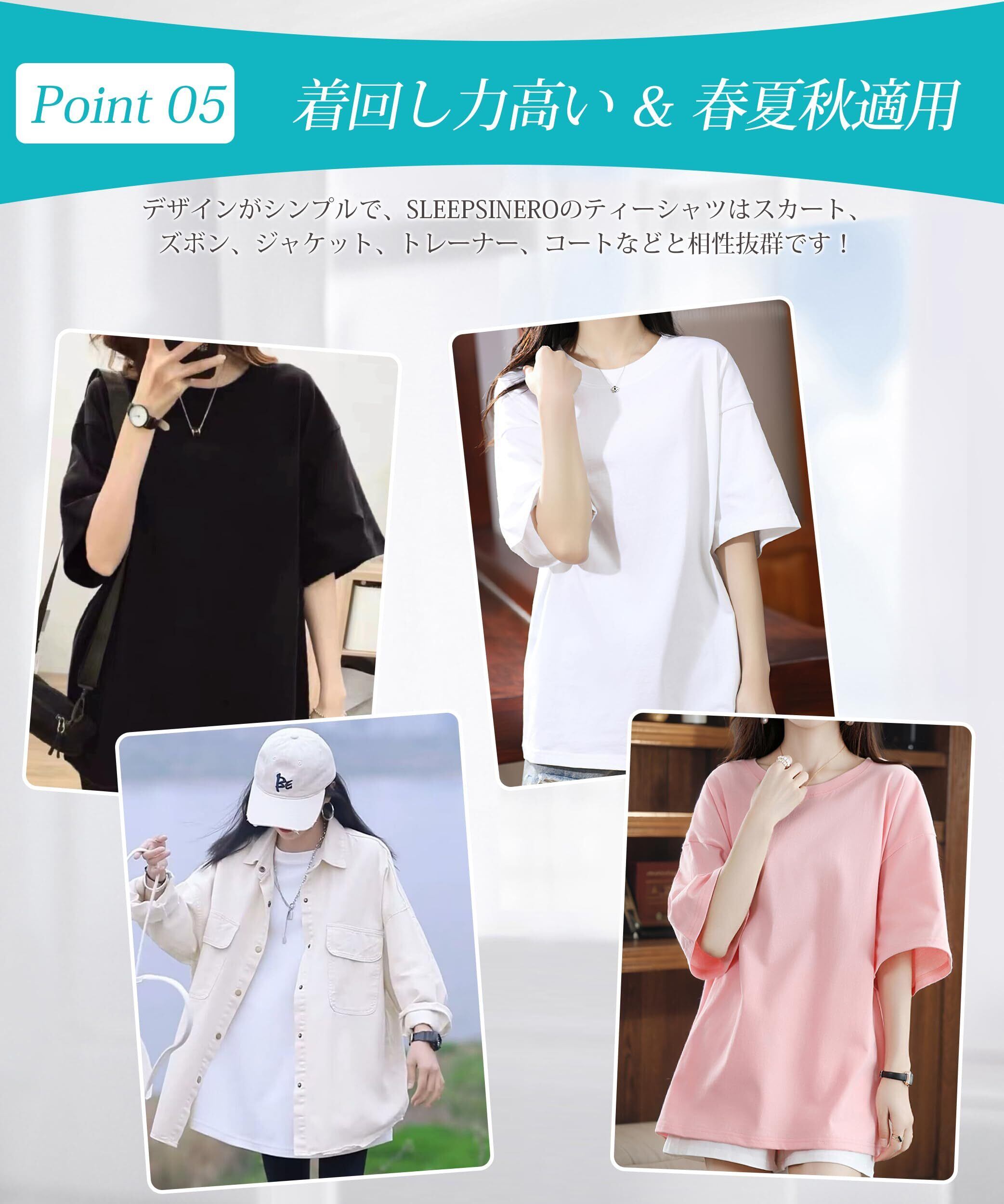 [SLEEPSINERO] tシャツ レディース 半袖 【体型カバー・ゆったり細見え】 シャツ レディーストップス 春 夏 クルーネック 大きいサイズ 吸汗速乾 通気 着痩せ オーバーサイズ レディース夏服 カットソー ロング 5分袖 おしゃれ