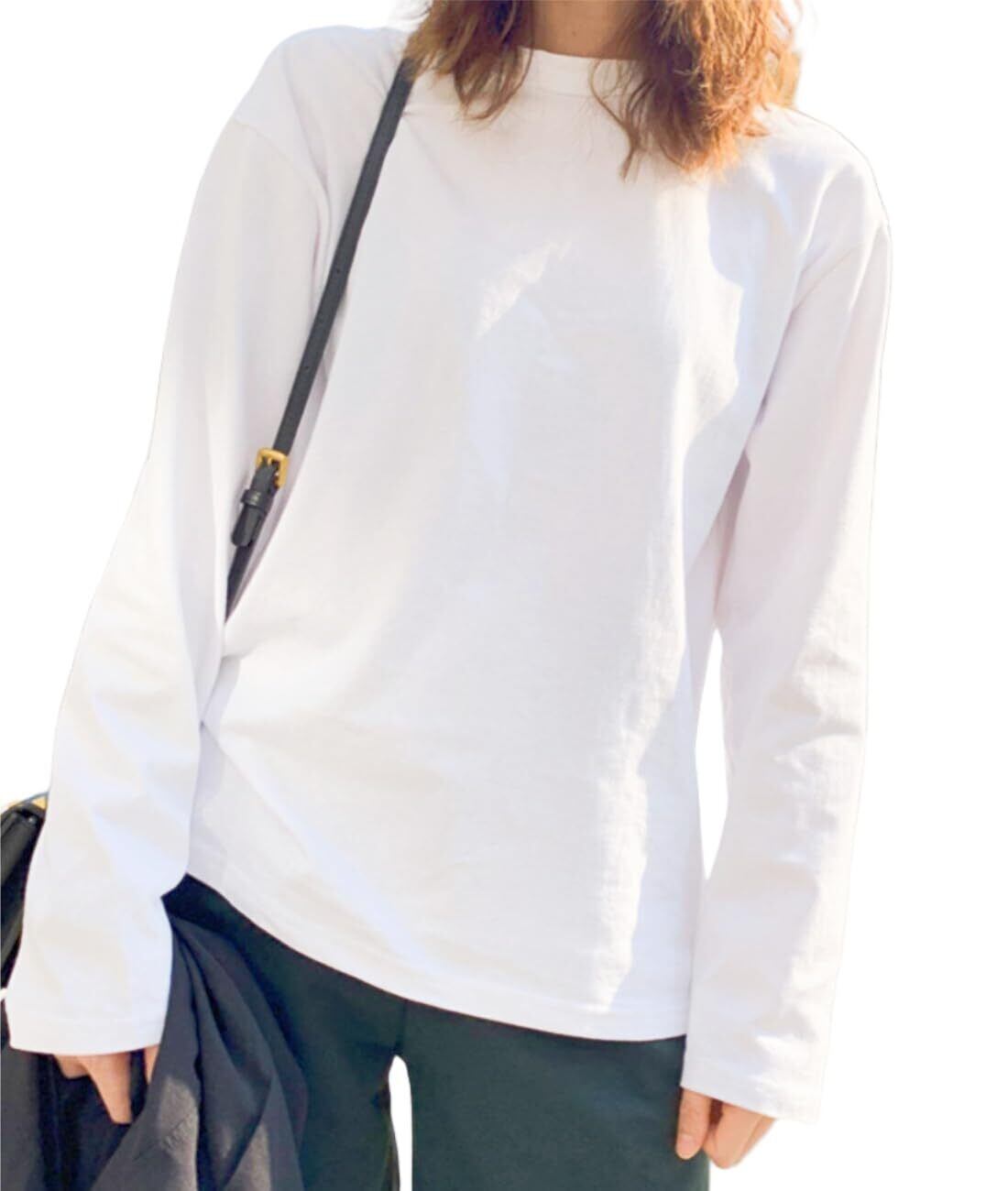[HUAFIY] 綿100!ロンティー レディース 長袖tシャツ トップス 【トレンドの新定義・ゆる感・小顔効果】 カットソー クルーネック ティーシャツ ロングスリーブ 無地 カジュアル ゆったり 重ね着 きれいめ オシャレ