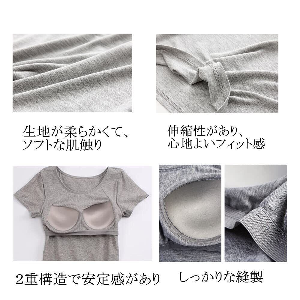 [Pink17°]レディース カップ付きTシャツ カットソー ブラトップ ゆったりサイズ 半袖 3色5サイズ yd05