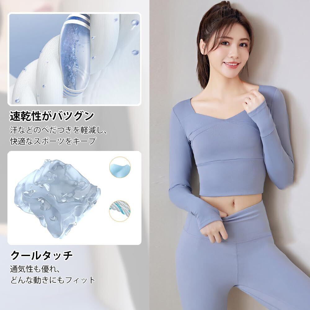 [Karsaer] ヨガウェア トップス 長袖 レディース スポーツブラ 長袖 体形カバー スリムフィット トレーニングウェア カップ付き ヨガ 吸汗速乾 通気性 ジム/ランニングA0023