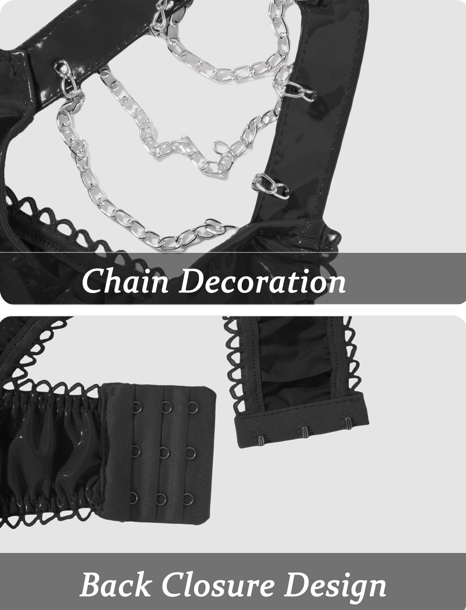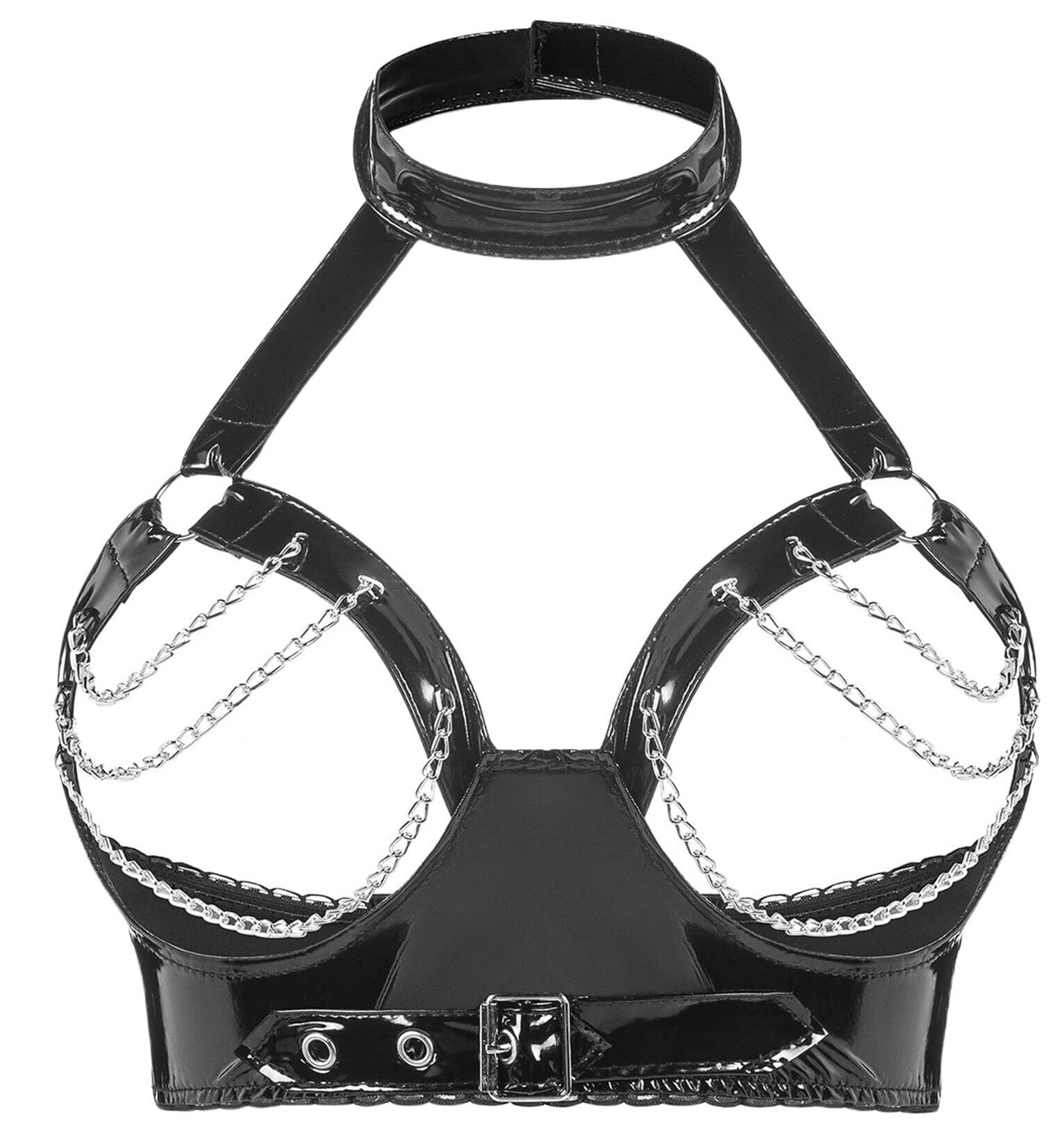【2022最新】[SEAUR] セクシートップ クラブウエア PUレザー 光沢 制服 チェーン バックレス 見せキャミ ベア レディース 女性