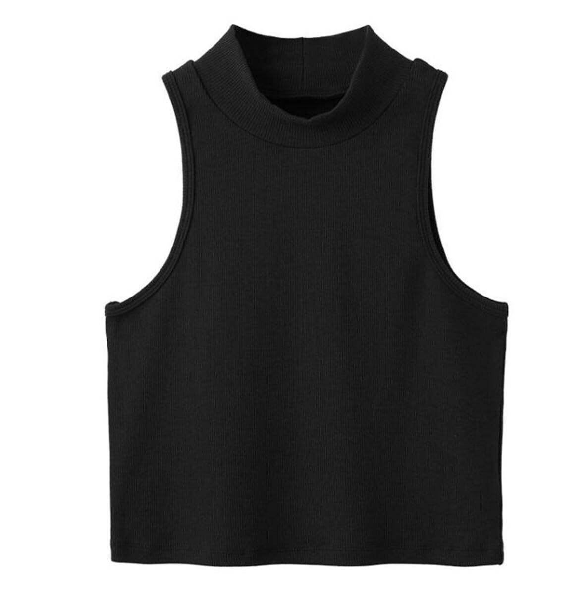 [WinsGreat] タンクトップ ショート丈 トップス レディース モックネック ノースリーブ タンクトップ へそ出し シンプル クロップトップ ダンス衣装 綿無地 肌着 下着 伸縮 通気 吸汗 痩せ 肌着 下着