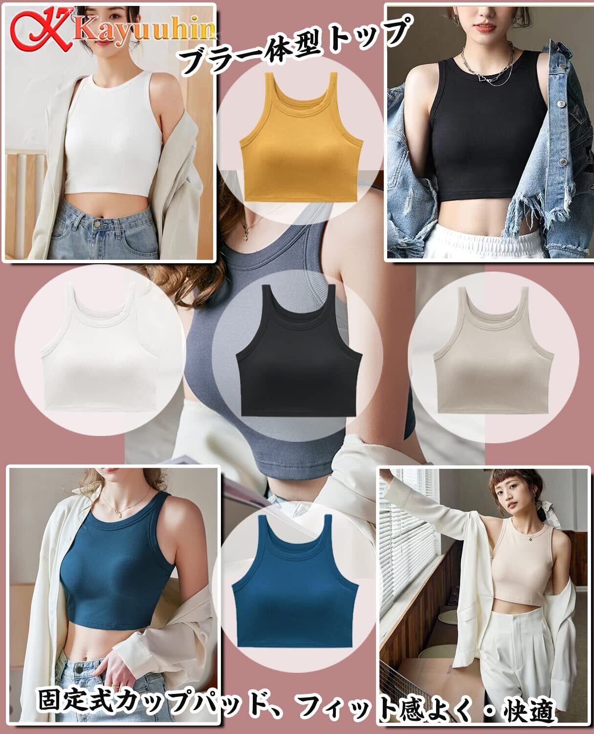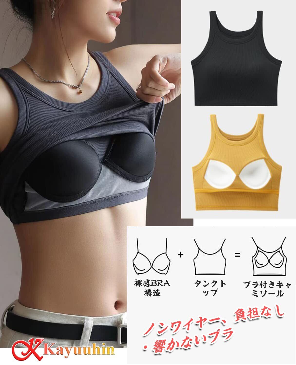 [Kayuuhin] タンクトップ ショート丈 カップ付き キャミソール 伸縮性 レディース インナー ノースリーブ ダンス スポーツ トップス 無地 人気 おしゃれで着こなし