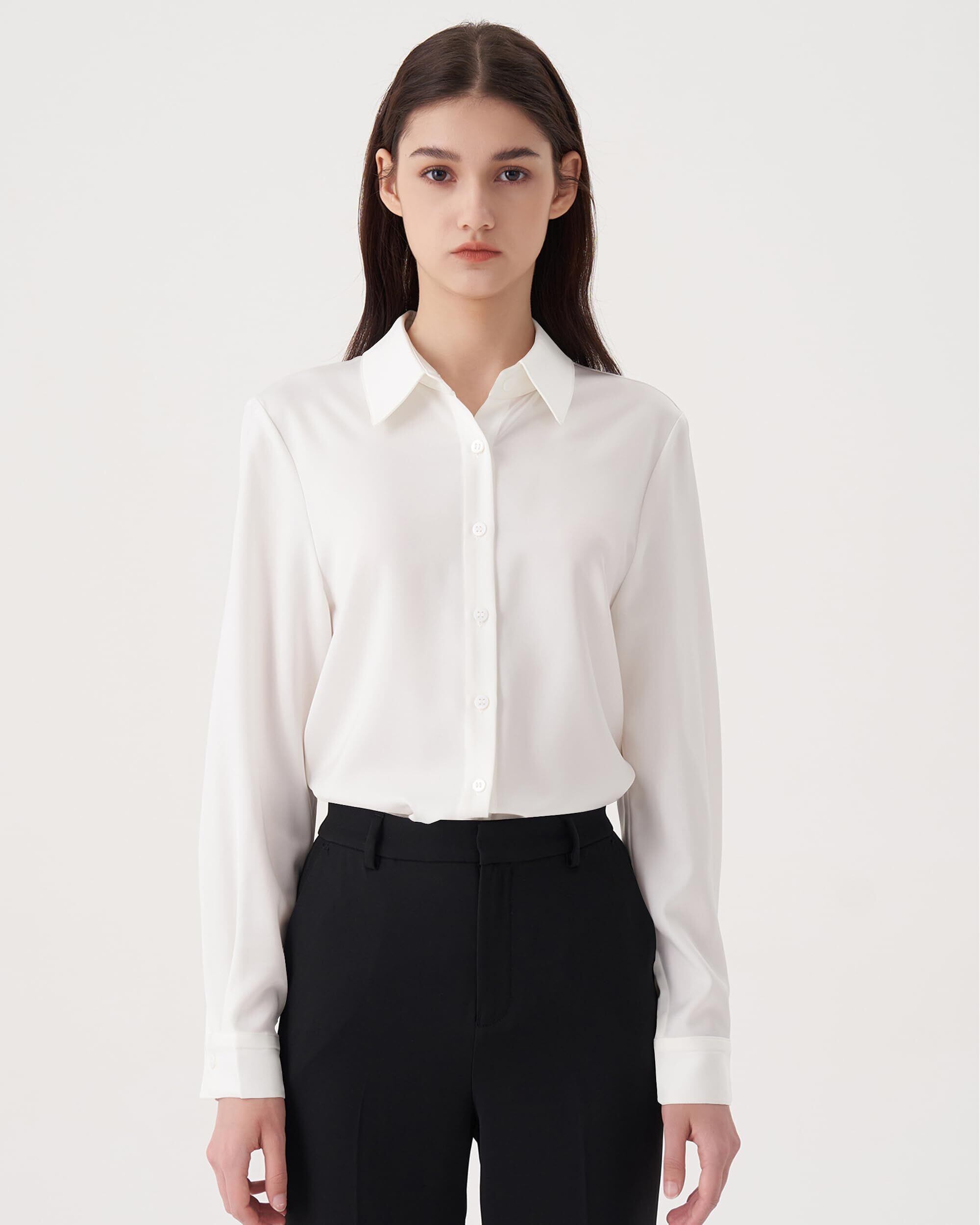 [YASHIGE] ブラウス ワイシャツ カッターシャツ レディース ドレスシャツ 長袖 無地 通勤 就活 オフィス 事務服 ビジネス ユニフォーム ノーアイロン 形態安定 ストレッチ 新生活