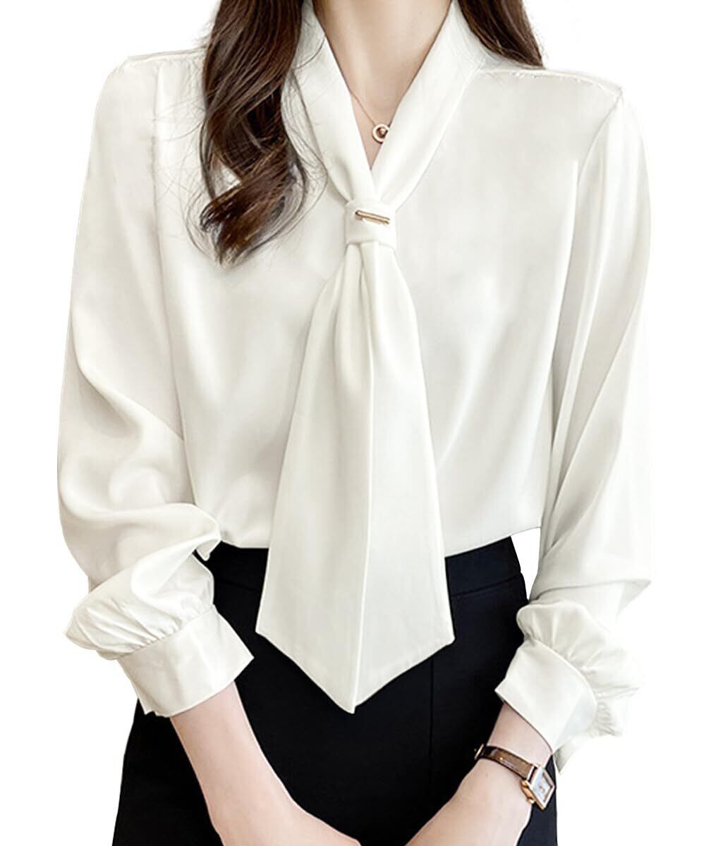 ポイント:優しくてエレガントな雰囲気を溢れてくれるボウタイ付きのレディース長袖ブラウスが新登場しました。リボンタイ付きで、ホールに入れて、ちょい調整してネクタイとして着用いただける便利なトップスです。ネクタイに付いたブローチでアクセントになり、エレガントで可愛いイメージを作り出すレディースシャツです。普段着としてもスーツと合わせてもご愛着いただけます。