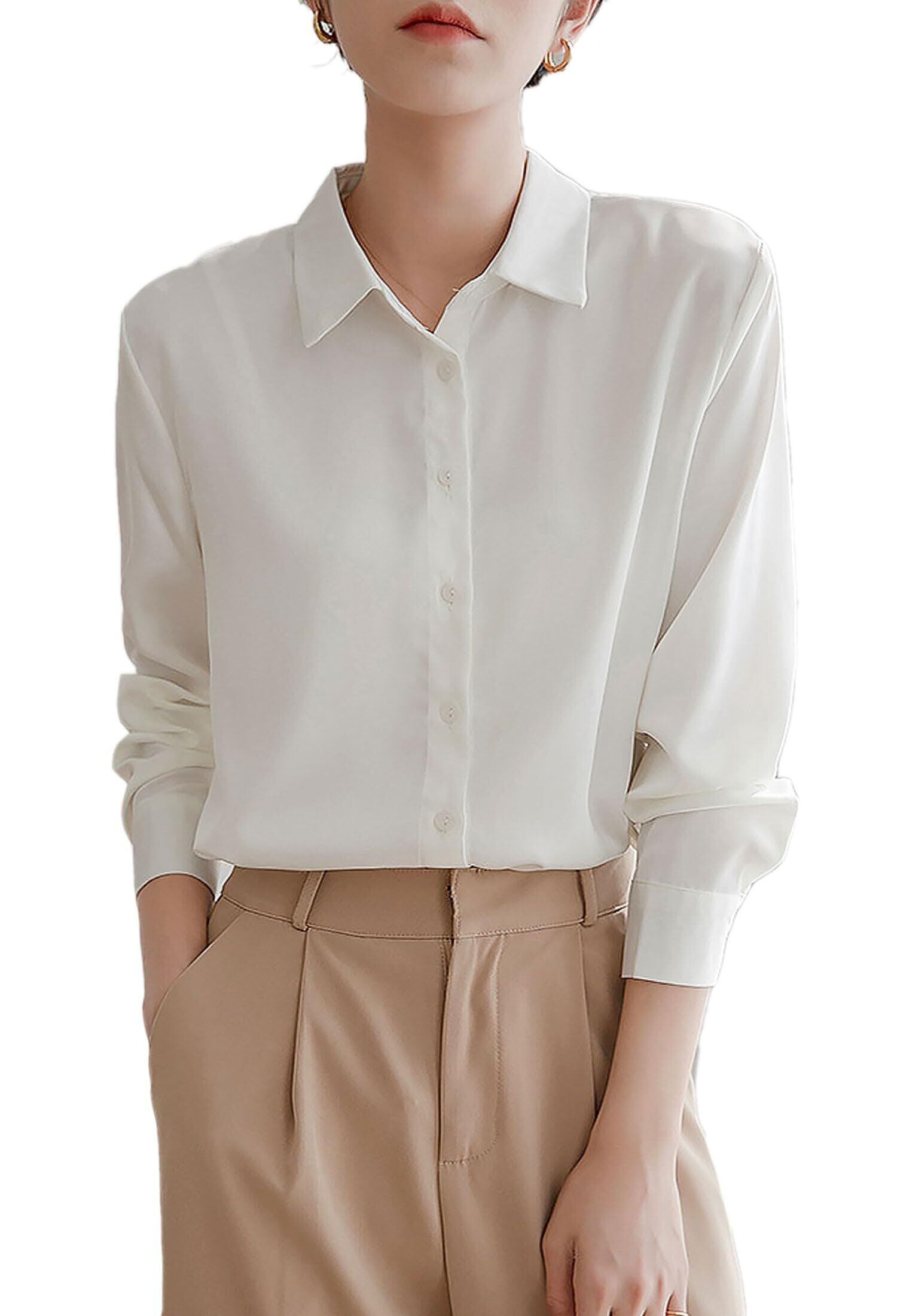 [RCL] レディ シャツ ブラウス レディース ワイシャツ 長袖 無地 オフィス 事務服 女性 おしゃれ 形態安定 シフォン カジュアル フォマール 通勤 トップス 秋 春