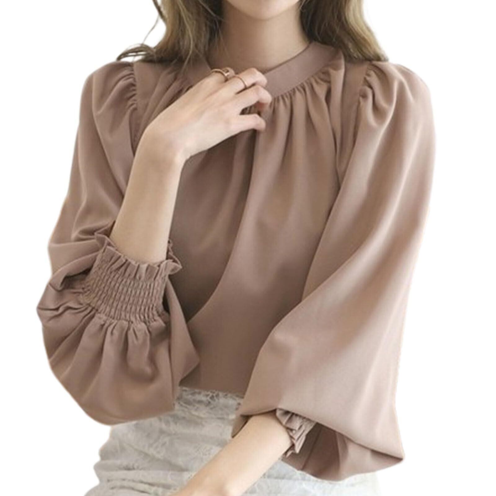【2022最新】[7-livehouse] ブラウス レディース 長袖 シャツ おしゃれ バルーン袖 トップス 立ち襟 シフォン 無地 上品 きれいめ パフスリーブ ギャザー フリル 爽やか ゆったり カジュアル 通勤 入学式 卒業式 オフィス 春 夏 秋