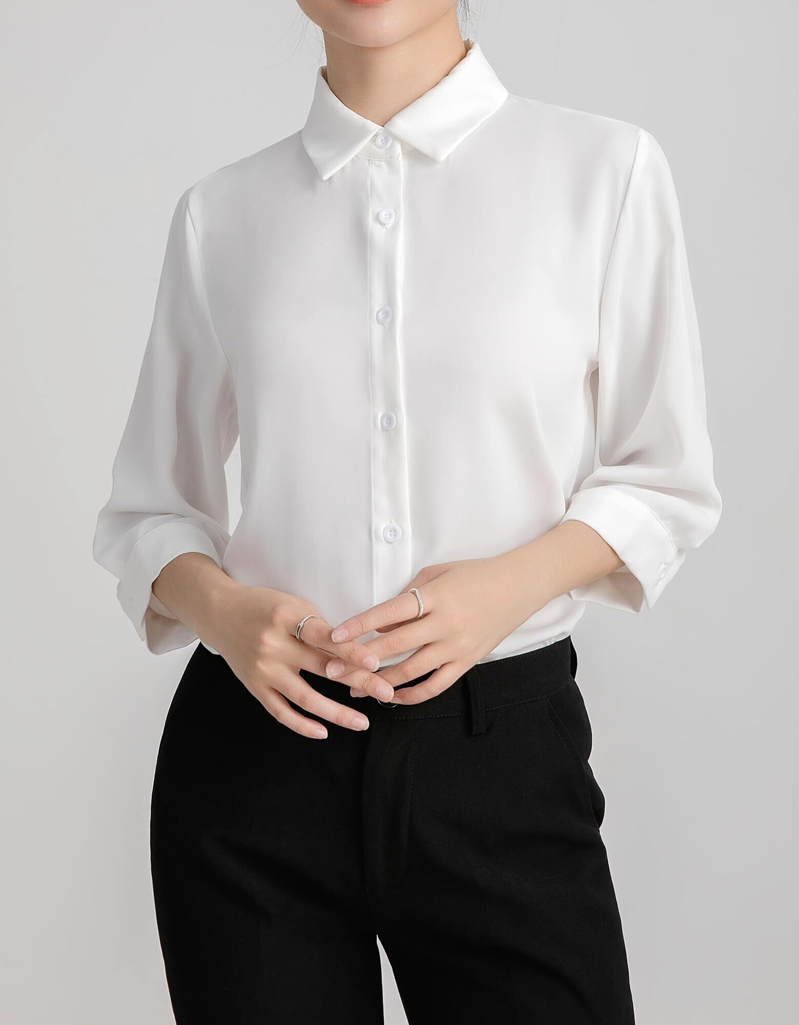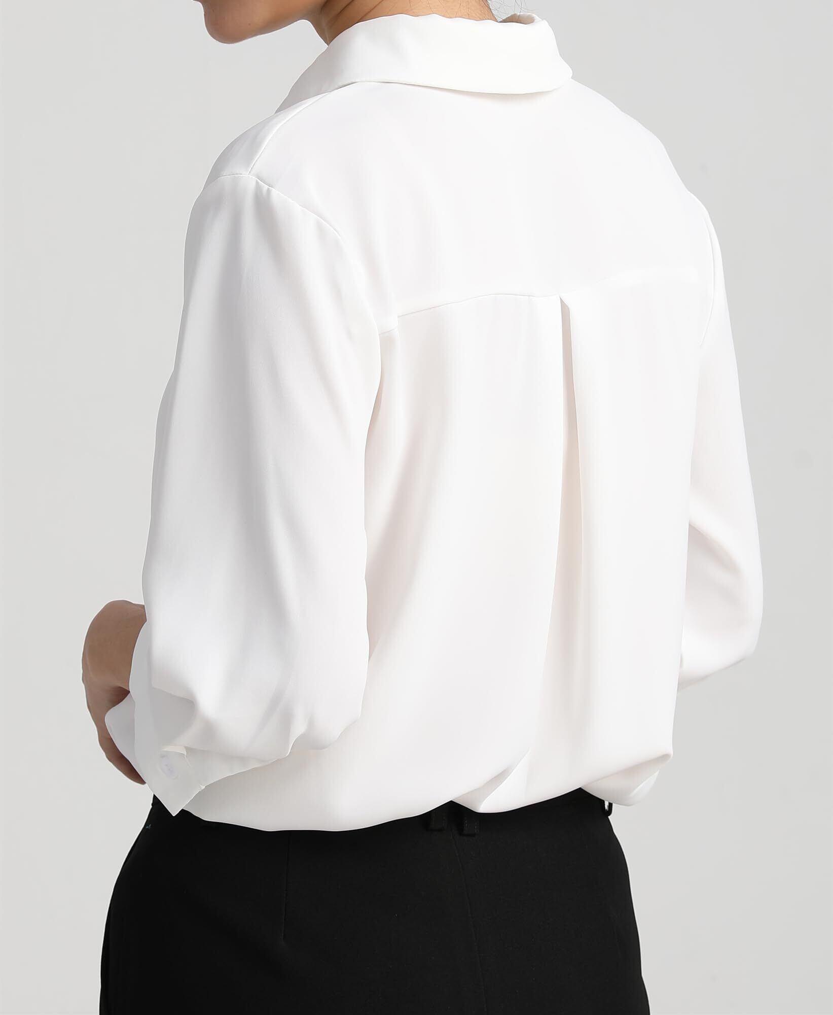 シフォンのしっとりと柔らかい肌ざわりと滑らかな光沢が魅力です。これ1枚で女らしさときちんと感を両立します。