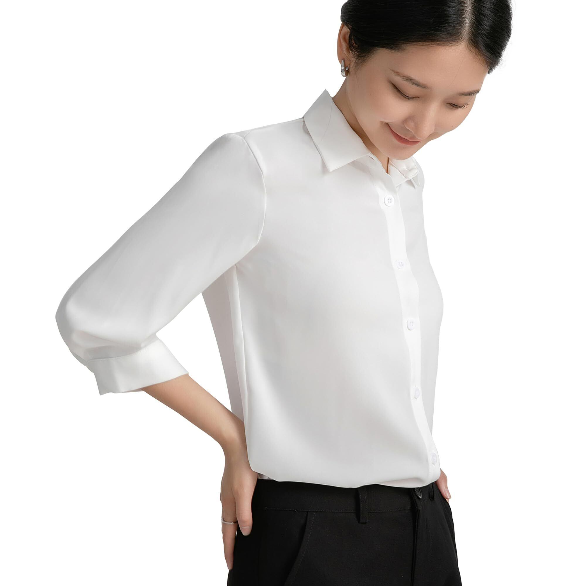 【2022最新】[SPRING SEAON] シャツ ブラウス レディース 七分袖 とろみワイシャツ ゆったり 大きいサイズ ノーアイロン オフィス カジュアル ファッション 通勤 日常 高通気性 XS~4L