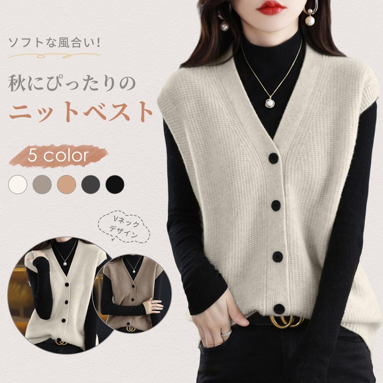 [LrisIuza Echo] ニットベスト レディース セーター vネック 大きいサイズ 袖なし ボタン 前開き 秋服 ノースリーブ おしゃれ 可愛い トップス 無地 重ね着 きれいめ シンプル カジュアル 秋 冬 体型カバー 通勤 カットソー 着痩せ