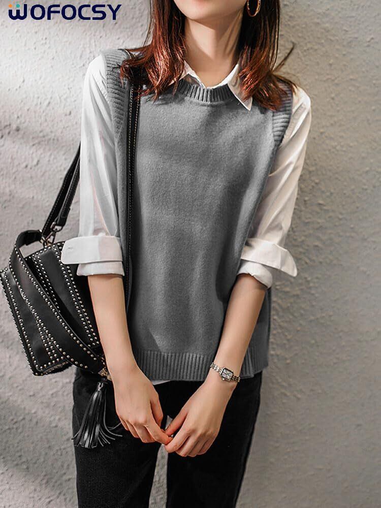 【新着商品】WOFOSY レディース ニットベスト 無地 シンプル 袖なし ニット ベスト ニットチョッキ カジュアル ゆったり トップス 春 秋 冬 SY194
