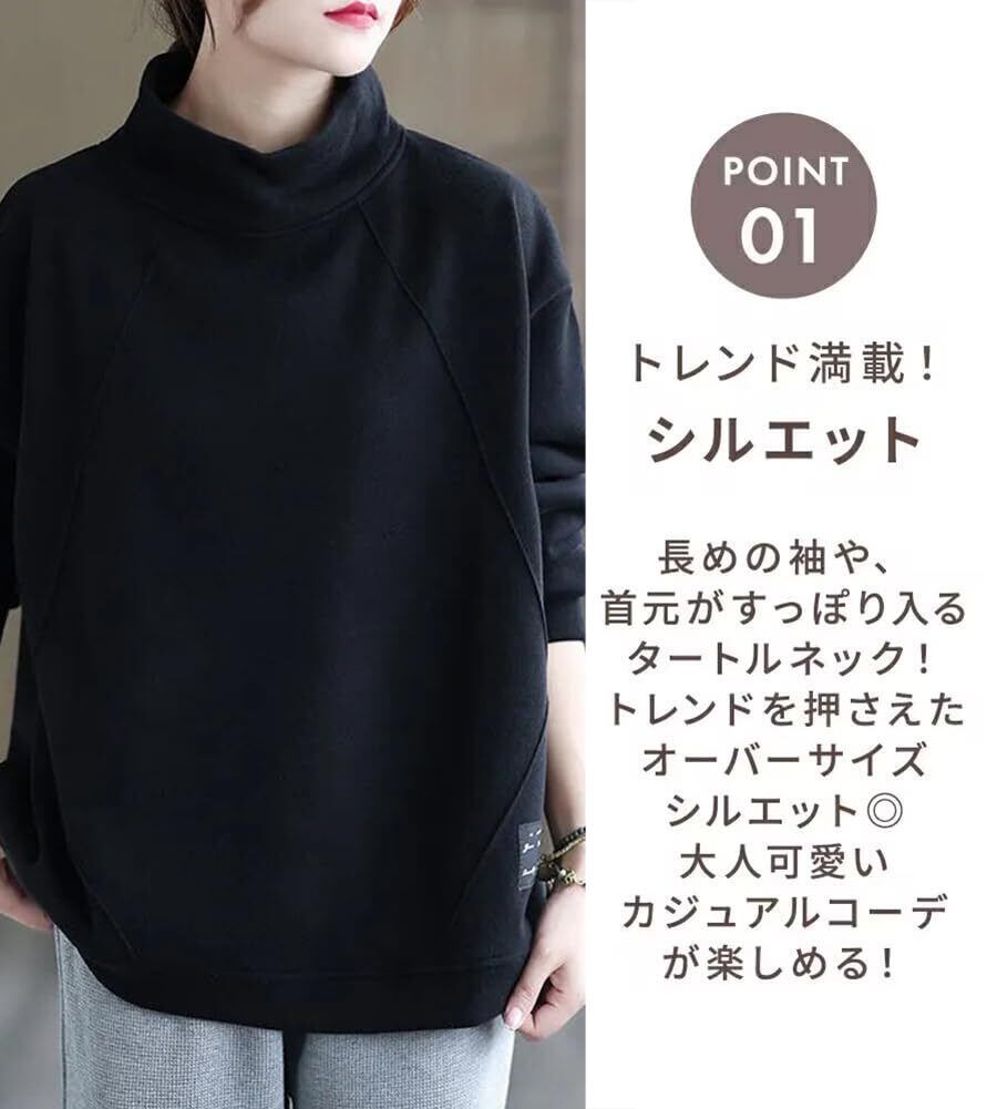 ハイネックとゆったりとしたシルエットが特徴で、体型を気にせず着用できます。スキニーデニムやスカート、レギンスとも相性が良く、シーンを問わず様々なスタイルを楽しむことができます。この一枚さえあれば、モードな印象からカジュアルな装いまで自由自在にコーディネートできます。