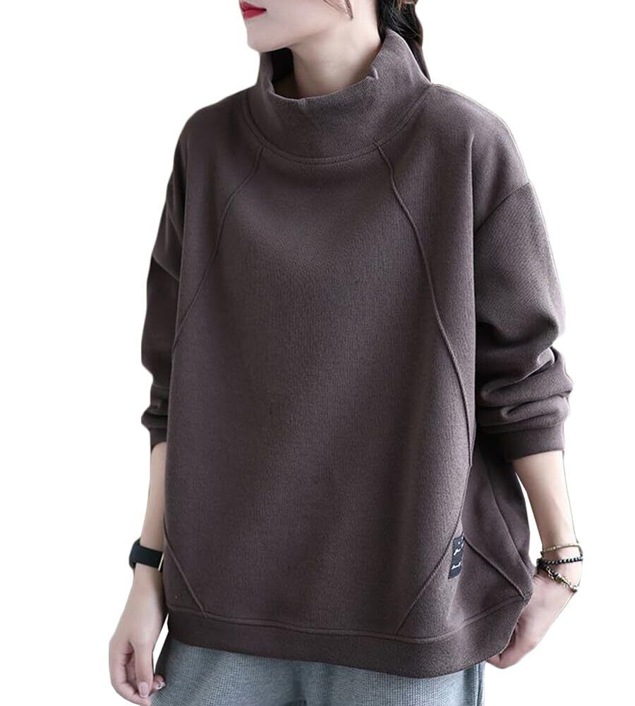 [Celetree] トレーナー スウェット トップス レディース ハイネック 裏起毛 長袖 大きいサイズ 春秋冬 無地 暖かい
