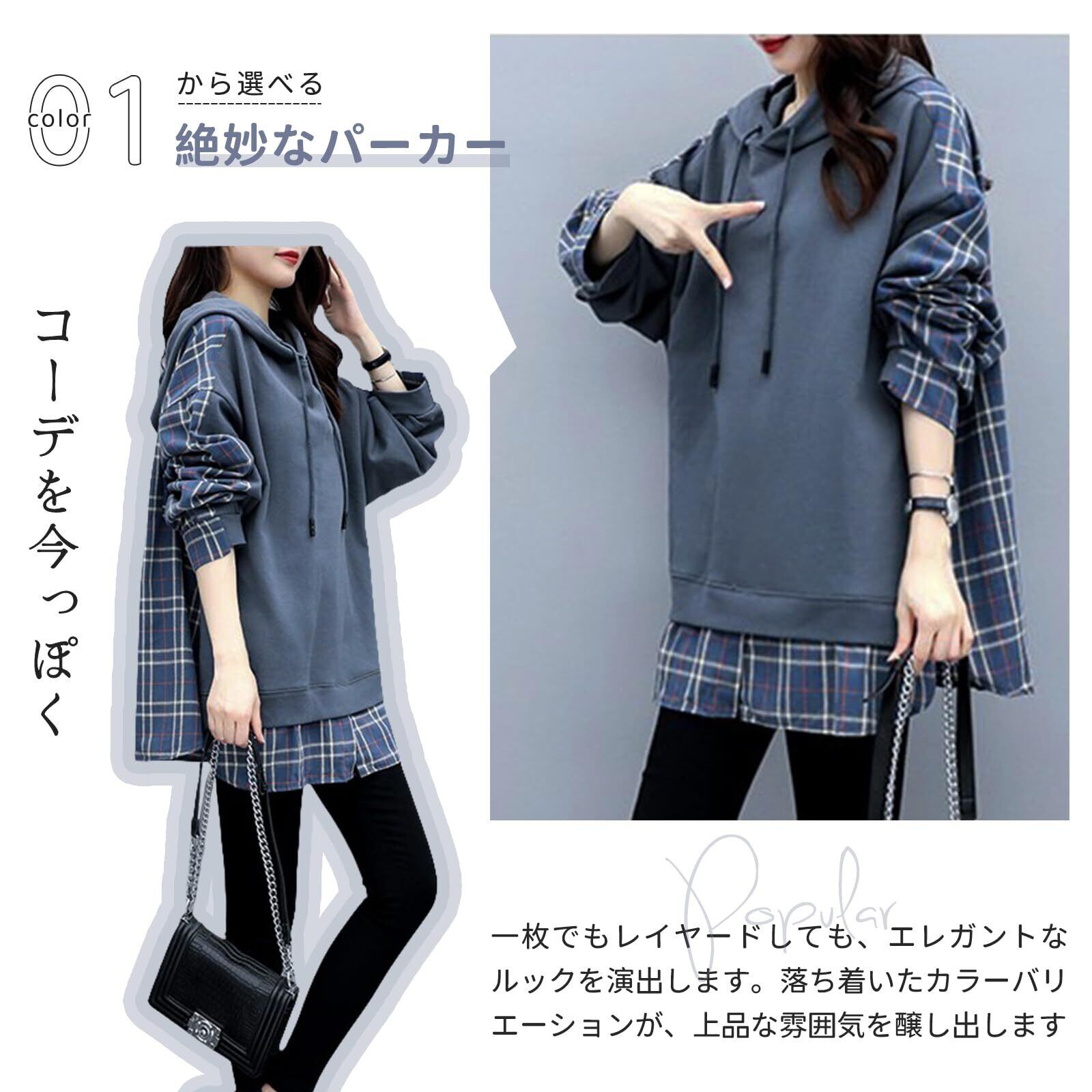 【2022最新】[Guooryvner] グオーリーブナー パーカー レディース 重ね着 長袖 トップス フード カジュアル ゆったり スウェット 春 秋 冬 通勤 無地 おしゃれ トレーナー 可愛いオーバーサイズ 薄手 お出かけ プルオーバー 体型カバー 韓国