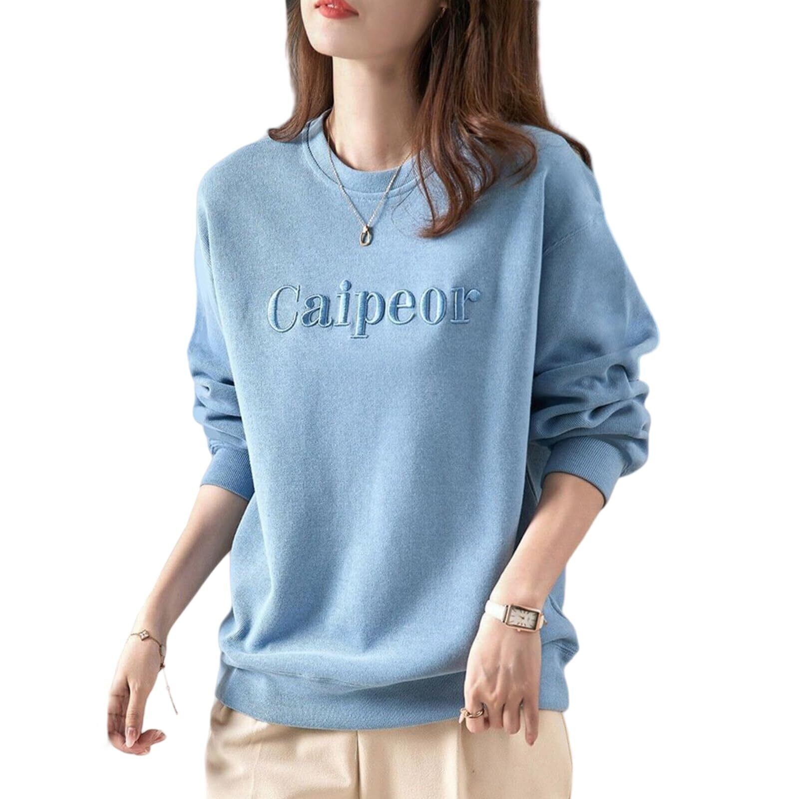 【全体的にシンプルな無地デザイン】このスウェットシャツはラウンドネックのデザインを採用しています。丸首は柔らかく上品な輪郭を持ち、首を完璧に保護し、寒さを防ぎ、女性の優しい気質をよりよく表現し、全体的なイメージをよりセクシーでキュートにし、女性の魅力を際立たせます。色の面では、このドレスは全体的に無地です。デザインの面では、目を引くロゴ刺繍がファッション要素を追加します。服の全体的なバージョンはゆったりとフィットしており、かがんだり、しゃがんだり、運動したりするときに窮屈に感じません。伝統的な丸い袖、袖口、裾はしっかりと縫い付けられており、袖が落ちないようにしています。細部の処理に関しては、すべてのステッチとすべての糸が丁寧に縫い付けられています。ネックライン、袖口、裾の細かいステッチ、服の内側の滑らかな処理はすべて、厳格な品質管理を反映しています。スタイルの面では、セクシーなパープル、エレガントなブルー、キュートなピンク、ファッショナブルなベージュを選択できます。