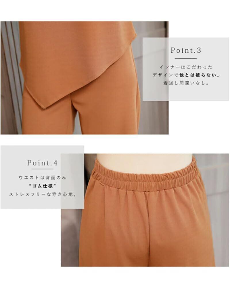 このセットアップは、キレイめなシルエットとカーディガンの組み合わせが魅力。パンツはストレートラインで、着用することでスッキリとした印象を与えながらも、体型をやさしくカバーします。普段使いからちょっとしたお出かけまで、おしゃれを楽しむことができます!
