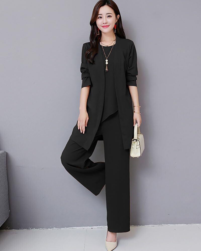 【新春セール】[Fosys] 3点セット セットアップ スーツ レディース カーディガン パンツ 通勤 カジュアル キレイめ 上品 ママ 体型カバー 春 秋 冬