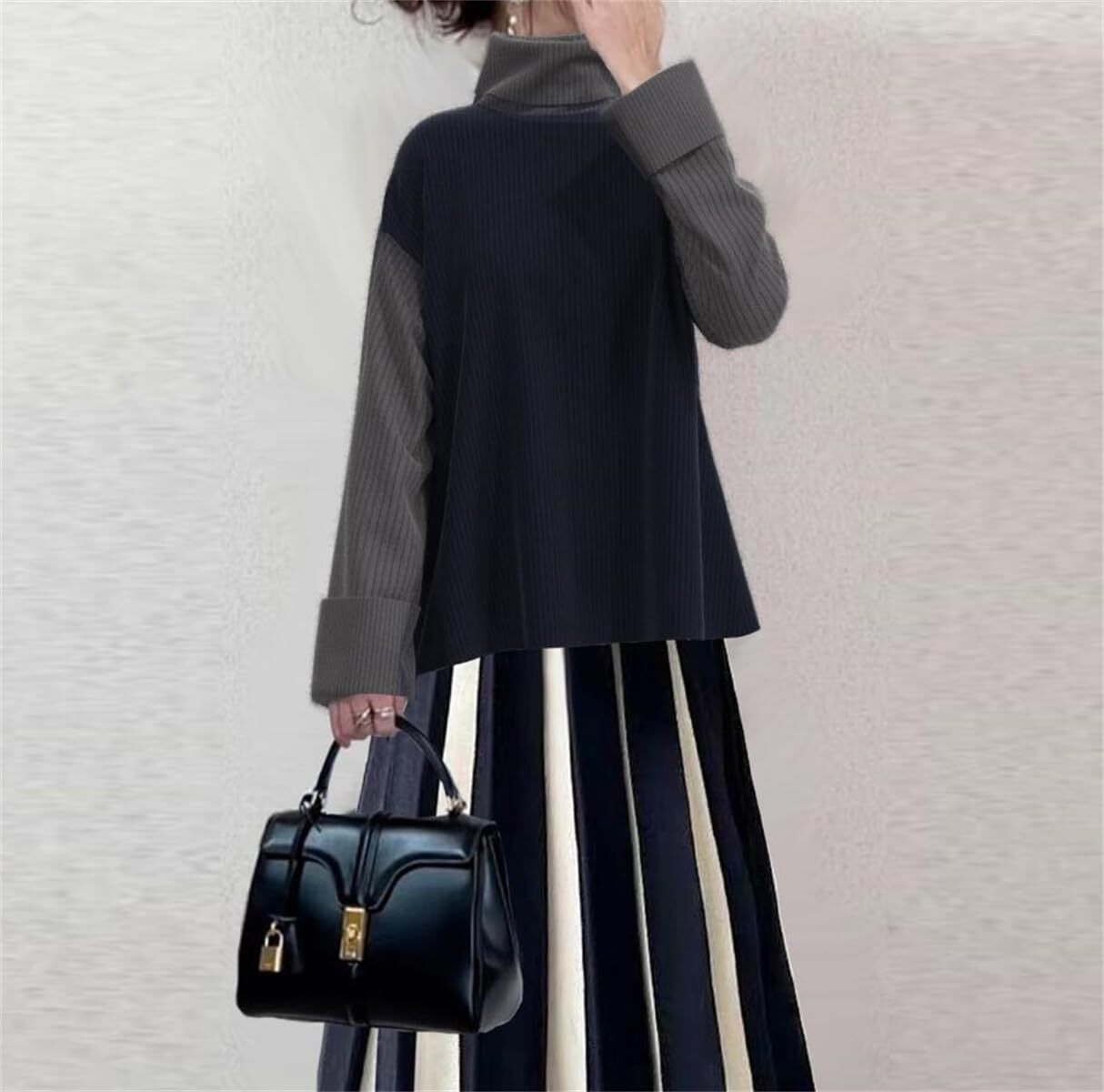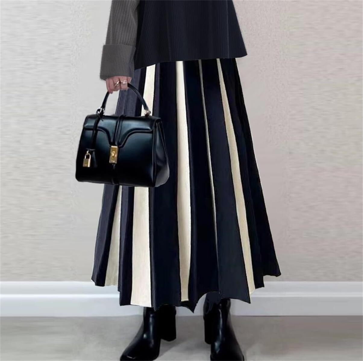 [YUANYUAN] 2点セット レディース セーター+ニットスカート 上下セット セットアップ ニットトップス+ロングスカート プリーツ カチマッンラグ ネック 長袖 冬服 春服 秋服 カジュアル ゆったり お洒落 可愛い 春秋冬