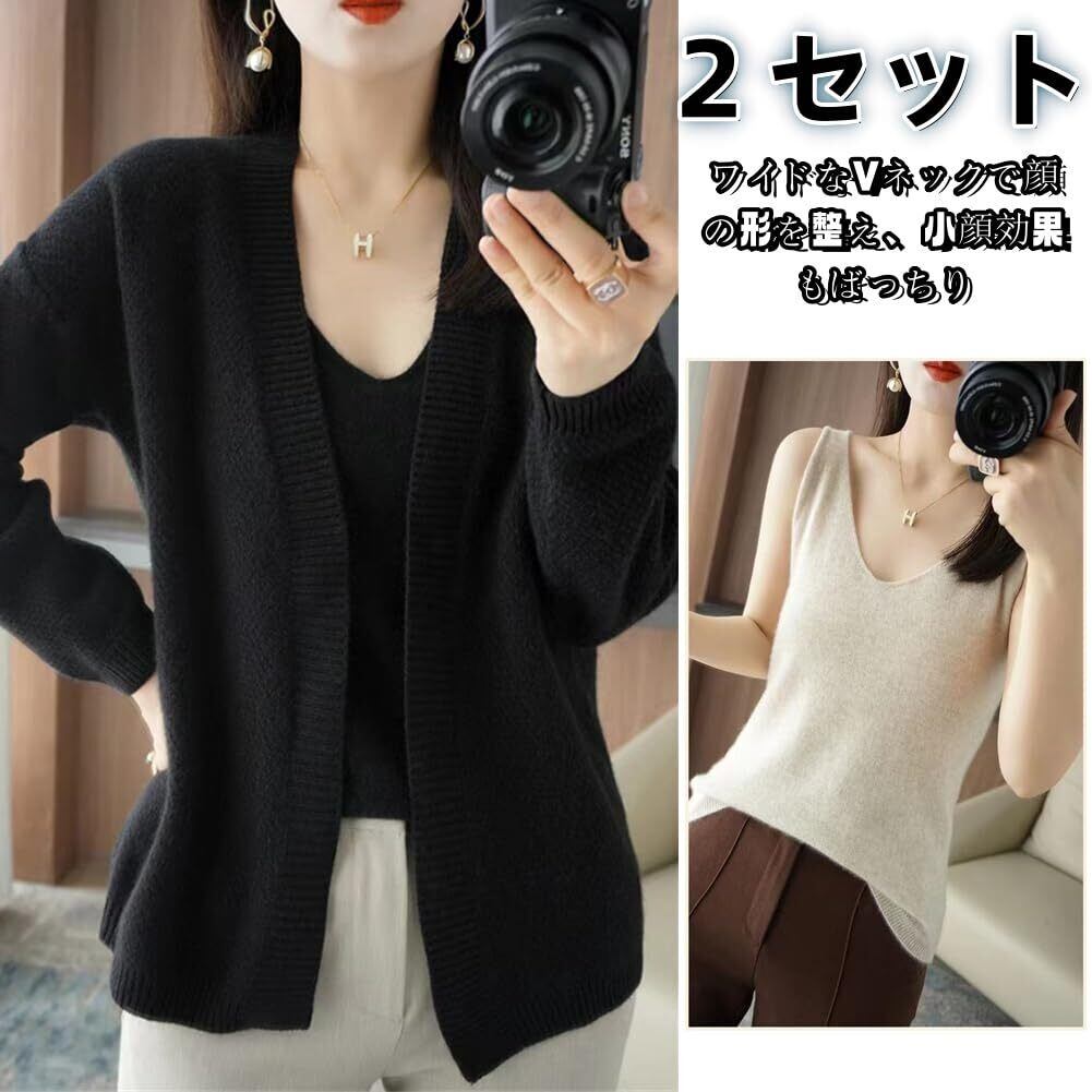 [KEWJYUE] アンサンブル ニット レディース 2セット 秋 無地 厚手 カーディガン トップス カジュアル ゆったり 羽織り 普段着 お出掛け