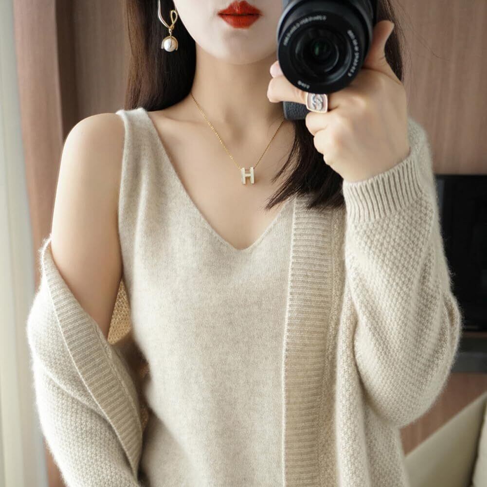 肌触りの柔らかいニットトップスカーディガンの2点セットが登場しました。繊細な肌ざわりと柔らかな肌触りで着心地抜群、ニットベストにケープコートを合わせたファッション性と保温性の両立はさまざまな場面で人気があります