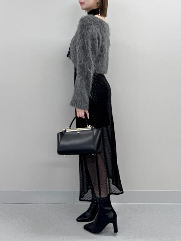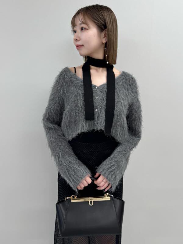 シャギー感を出してふんわりと仕上げたニットカーディガンと、きれいめな表情のニットのキャミソール・スカーフの3点セットが届きました。カーディガンはボリュームを出した編み地で仕上げていますが、クロップド丈なのでボトムスとのバランスが取りやすいデザインです。フロントのメタルボタンが上品な雰囲気に。セットのニットキャミソールは滑らかな編み地でフィット感を出しました。キャミストラップはコーディネートを邪魔しない細ストラップです。トレンドライクなキャミソールと同素材のニットスカーフもセットに。それぞれ単品でも活用できるシンプルなデザインが魅力です。セットでご着用いただくと、カーディガンとキャミソールの素材の違いがコーディネートに奥行きをもたらし、華やかに。3色展開ですが、グレーとターコイズは配色で合わせています。