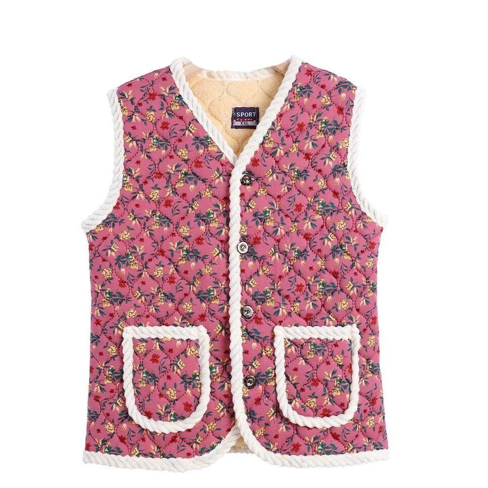 ハルモニチョッキ おばあちゃんチョッキ 韓国 ベスト 裏起毛 キルト 花柄 [並行輸入品]