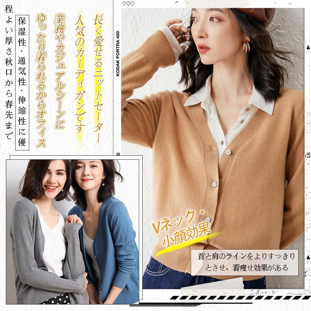 [FLYSHION] カーディガン レディース ニット Vネック カシミヤタッチ 秋冬 長袖 小顔 着痩せ 暖かい 冷房対策 前開き 高伸縮 羽織り 無地 コート カジュアル オフィス 通勤 日常 部屋着