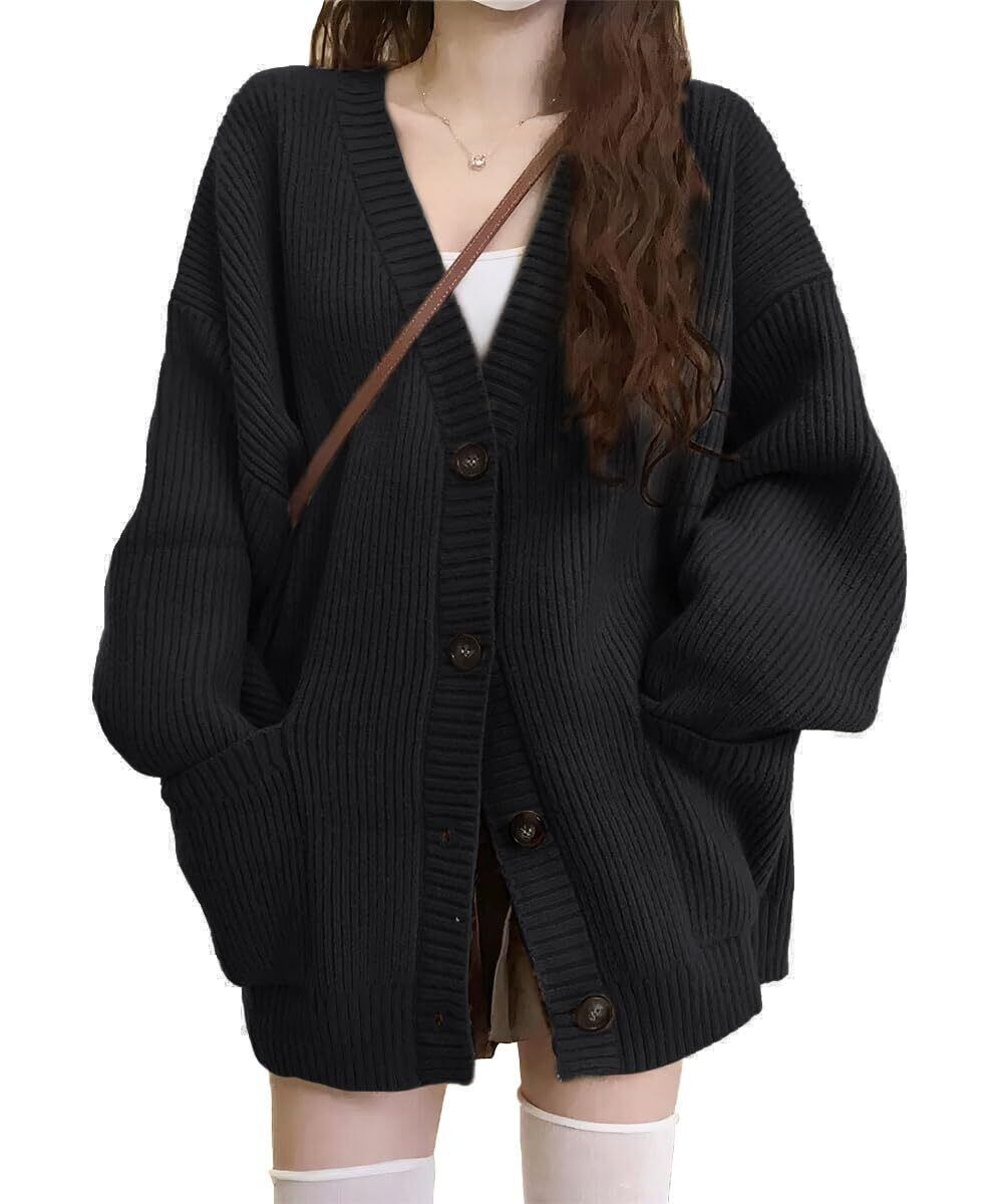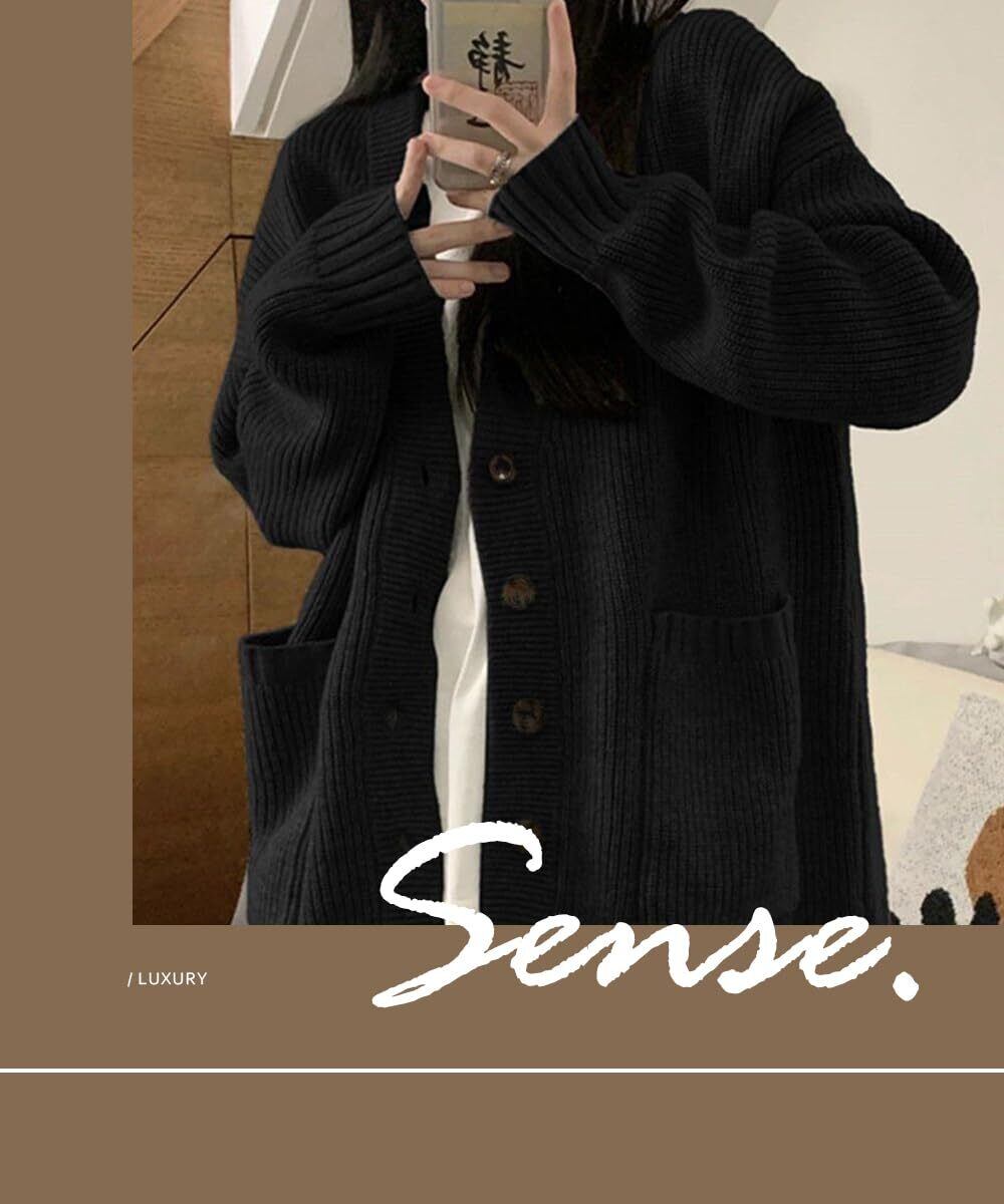 【人気商品】[DayaEmmoTQ] ロングカーデ ニット レディース Vネック レイジースタイル カーディガン コート 長袖 ボタン トップス ストレッチ 大きいサイズ ゆったり カットソー 暖かい 羽織り 秋服 着痩せ オフィス 通勤 秋冬春