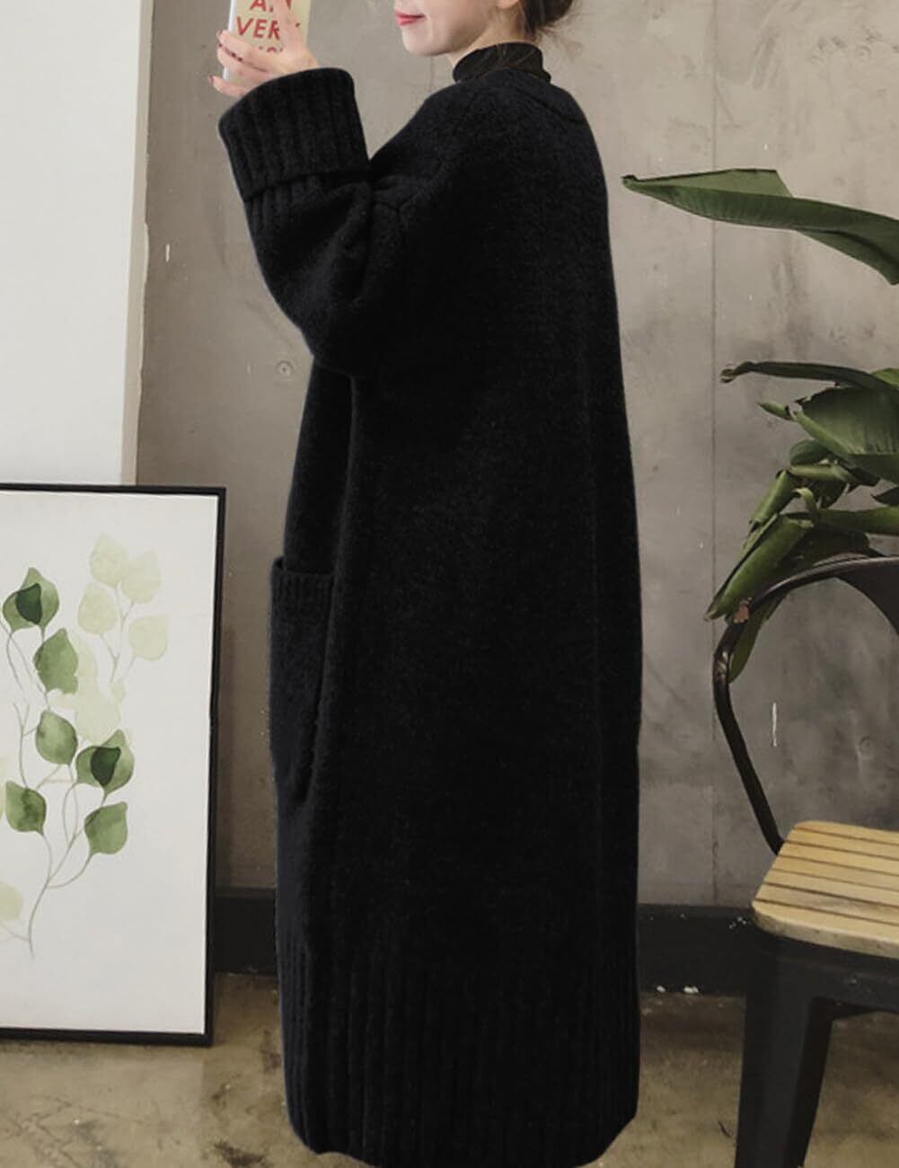 [Bidason] レディース カーディガン 進化 ロング丈 ニット ノーカラー ポケット付き カーデ オシャレ 可愛い シンプル 柔らか 体型カバー 着痩せ 暖か 秋 冬 通勤 セーター 保温 アウター
